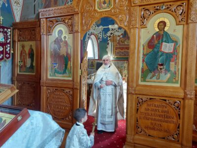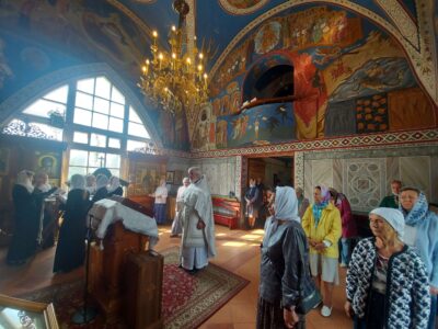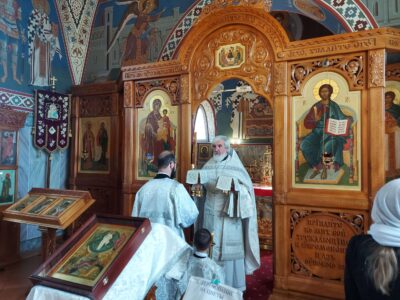 26 августа 2023, в день отдания праздника Преображения Господня, Божественную литургию в храме святого праведного Иоанна Кронштадтского на Кронштадтской площади совершил настоятель храма протоиерей Михаил Подолей.
