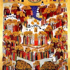 «Поздравляю вас с праздником Всех святых Церкви Русской. Этому празднику в будущем году исполнится сто лет, — отметил митрополит. — Память русских святых отмечалась и в дореволюционное время, но не так торжественно. Поместный Собор 1917-1918 годов повелел повсеместно отмечать его в Неделю 2-ю по Пятидесятнице, чтобы все русские святые — покровители и заступники русских людей — молились за нас. Тяжелое время наступало. Уже прогнали земного царя, попытались избавиться и от Царя Небесного. Религию объявили «опиумом для народа», начались гонения. Участники Поместного Собора понимали, что больше обращаться не к кому, кроме как к сродникам нашим, предстоящим перед Богом на Небе. У нас не было ни одного города без своего святого. В храмах и монастырях хранились мощи угодников Божиих, и люди их почитали. Власти решили прекратить это, и началась кампания по изъятию мощей, чтобы люди не могли обращаться к нашим небесным заступникам. Так получилось, что многие мощи попали в Ленинград, в Музей религии и атеизма. Потом с Божией помощью они были найдены и возвращены на прежние места».