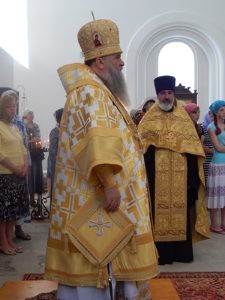 Владыка поздравил всех, кто носит имена русских святых, с именинами и поблагодарил настоятеля за труды по строительству храма.