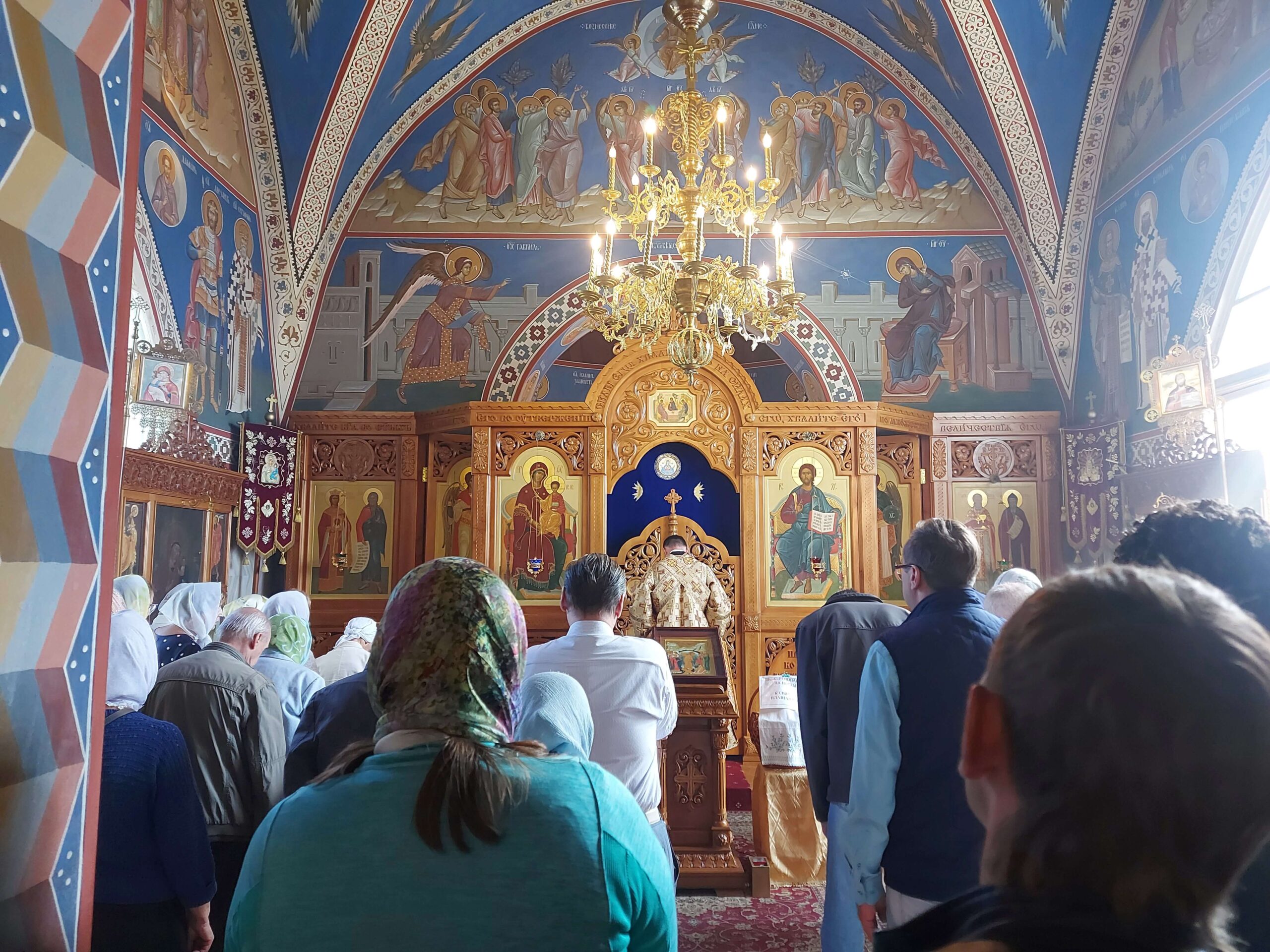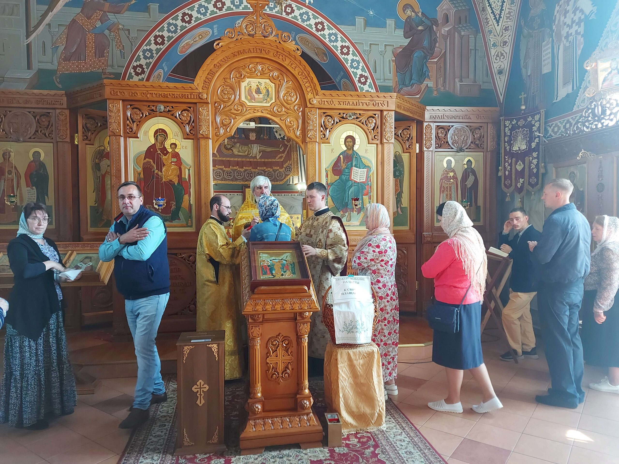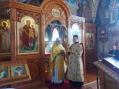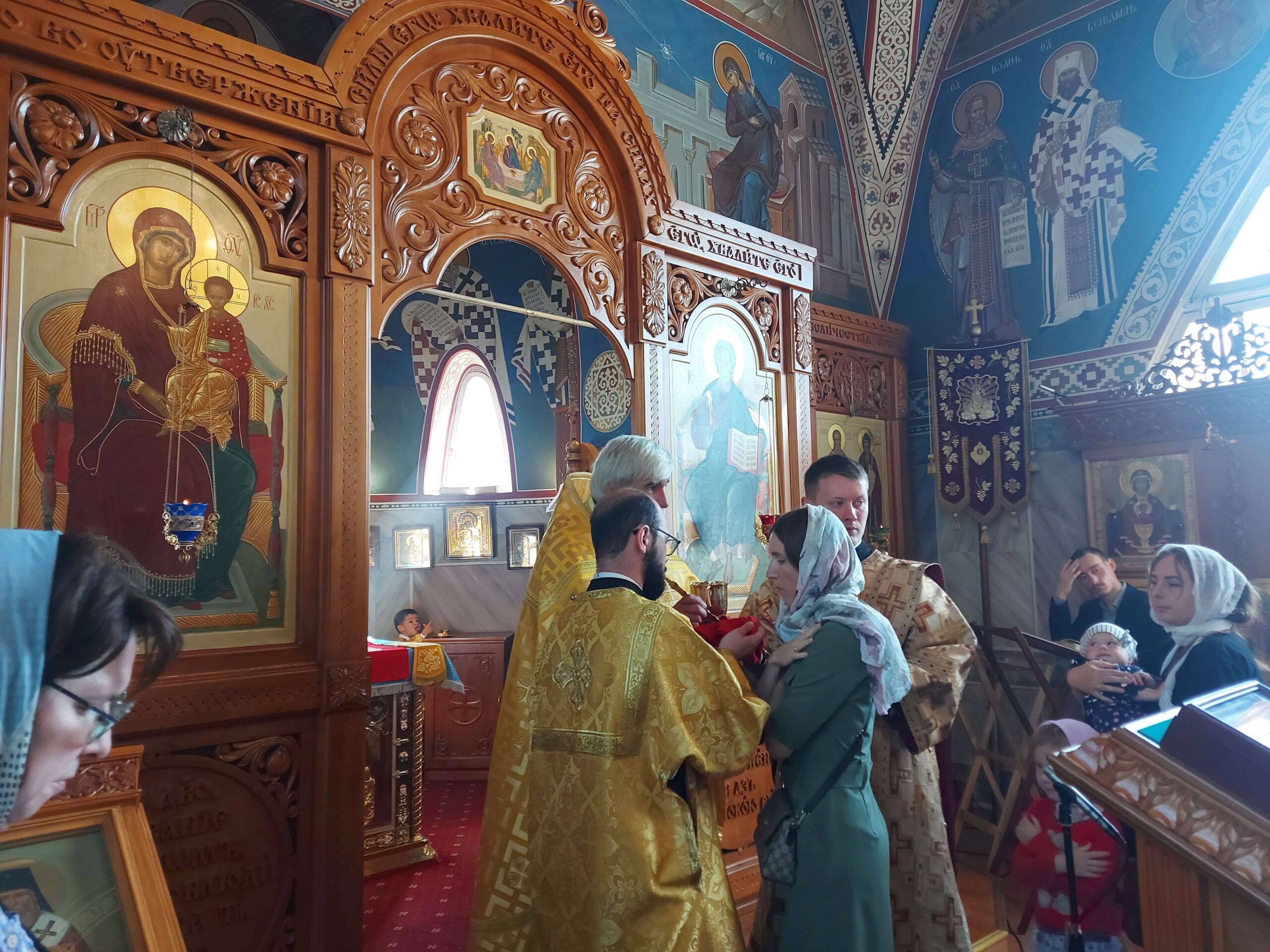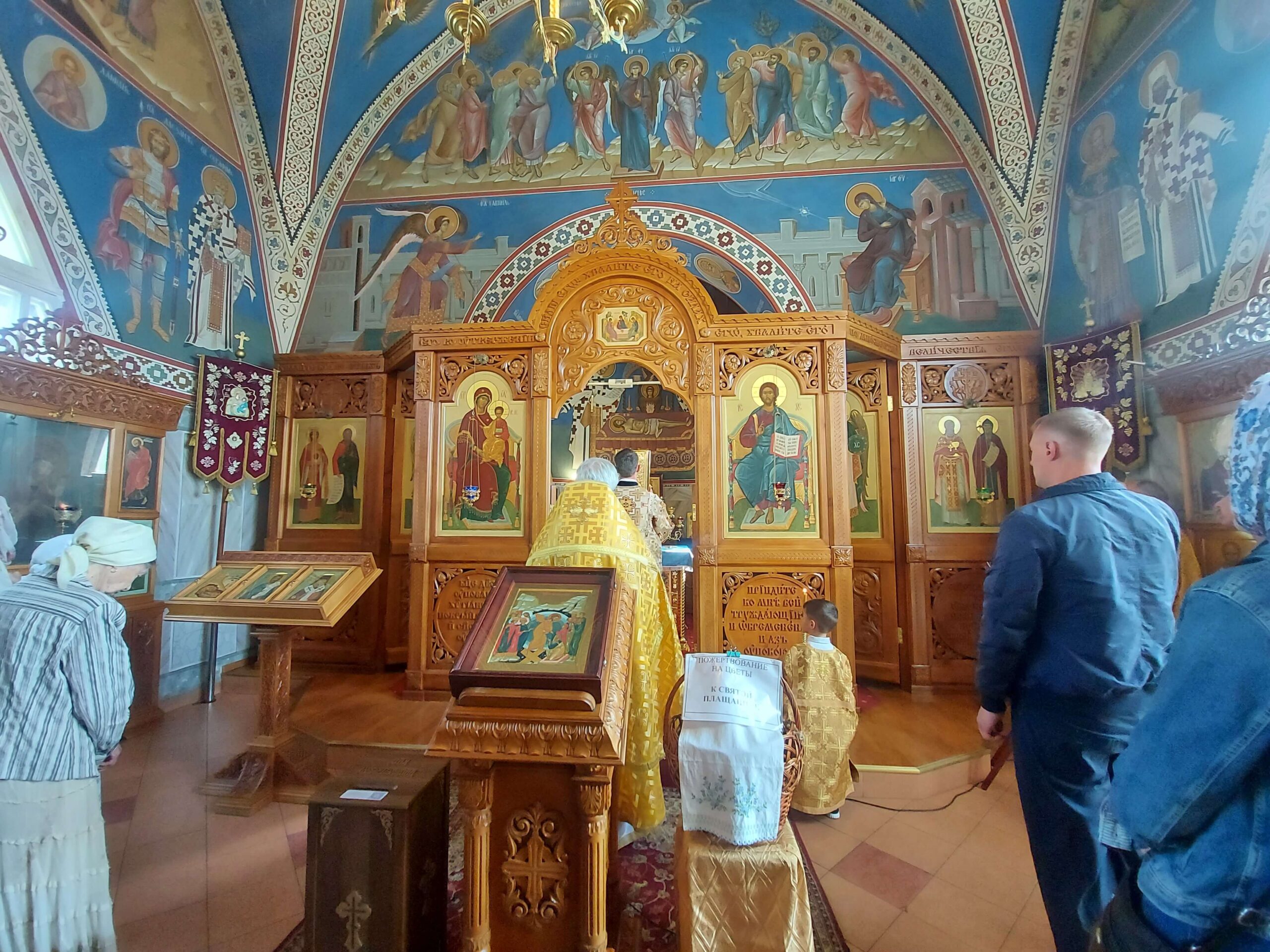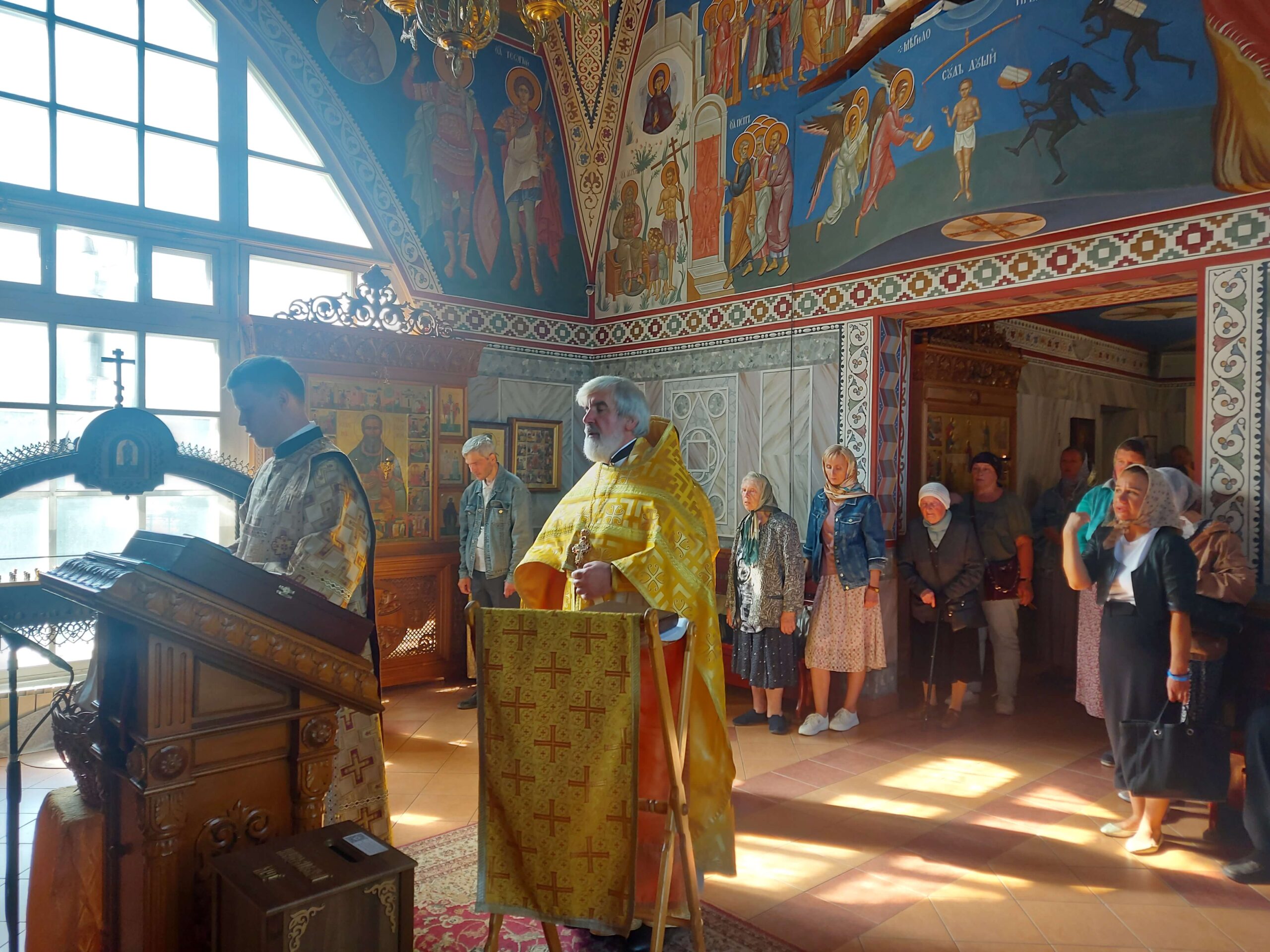 27 августа 2023 года, в Неделю 12-ю по Пятидесятнице, предпразднство Успения Пресвятой Богородицы, Божественную литургию в храме святого праведного Иоанна Кронштадтского на Кронштадтской площади совершил настоятель храма протоиерей Михаил Подолей в сослужении клира.