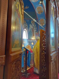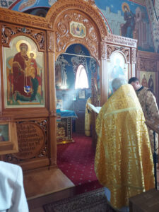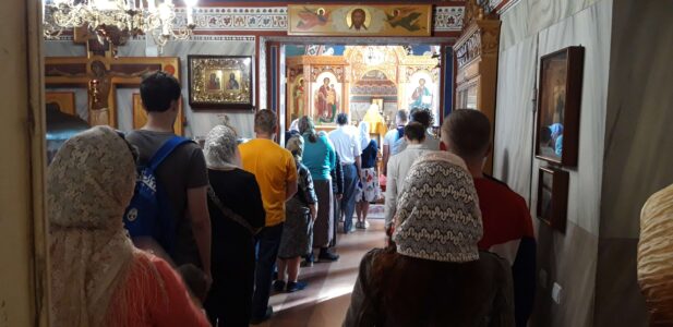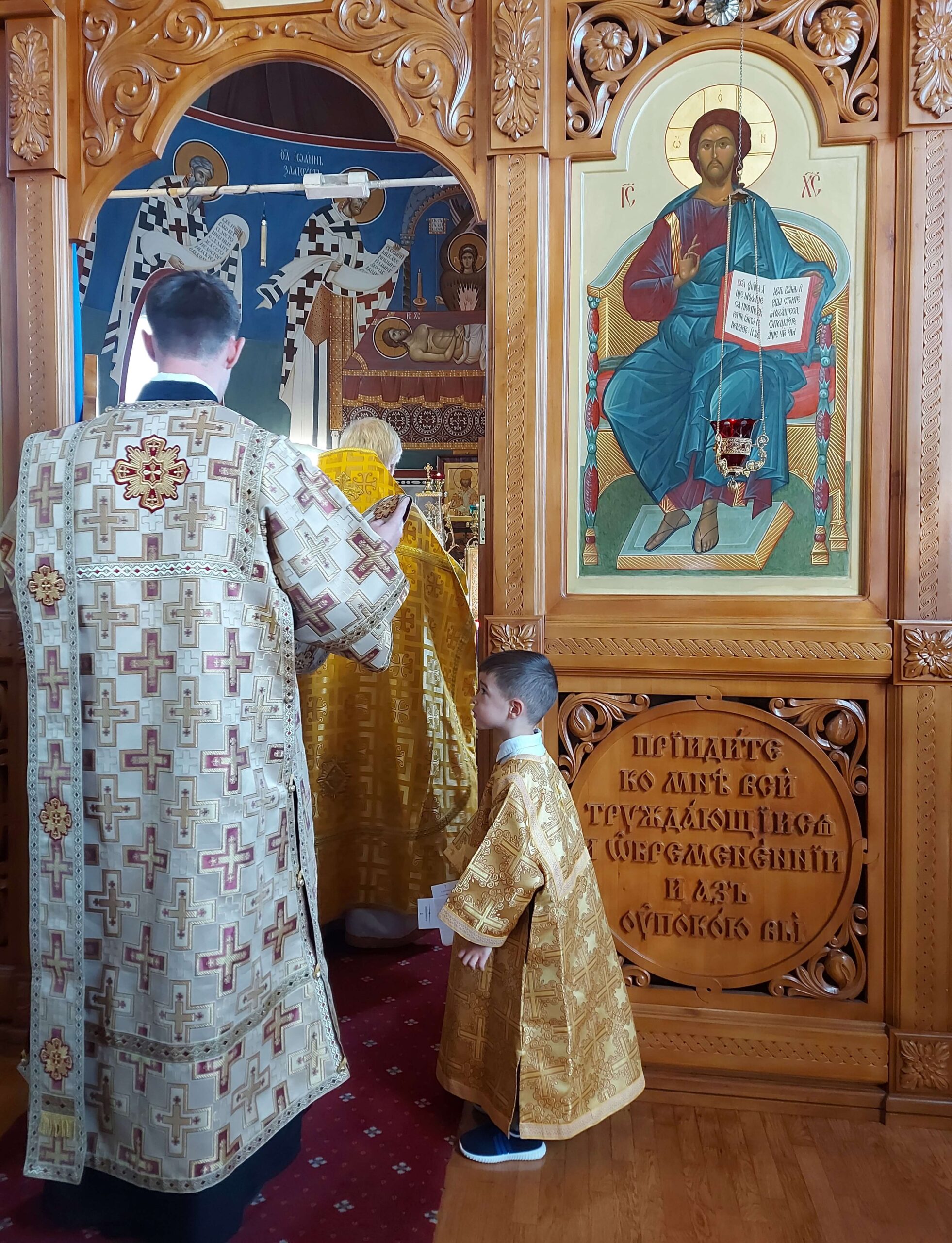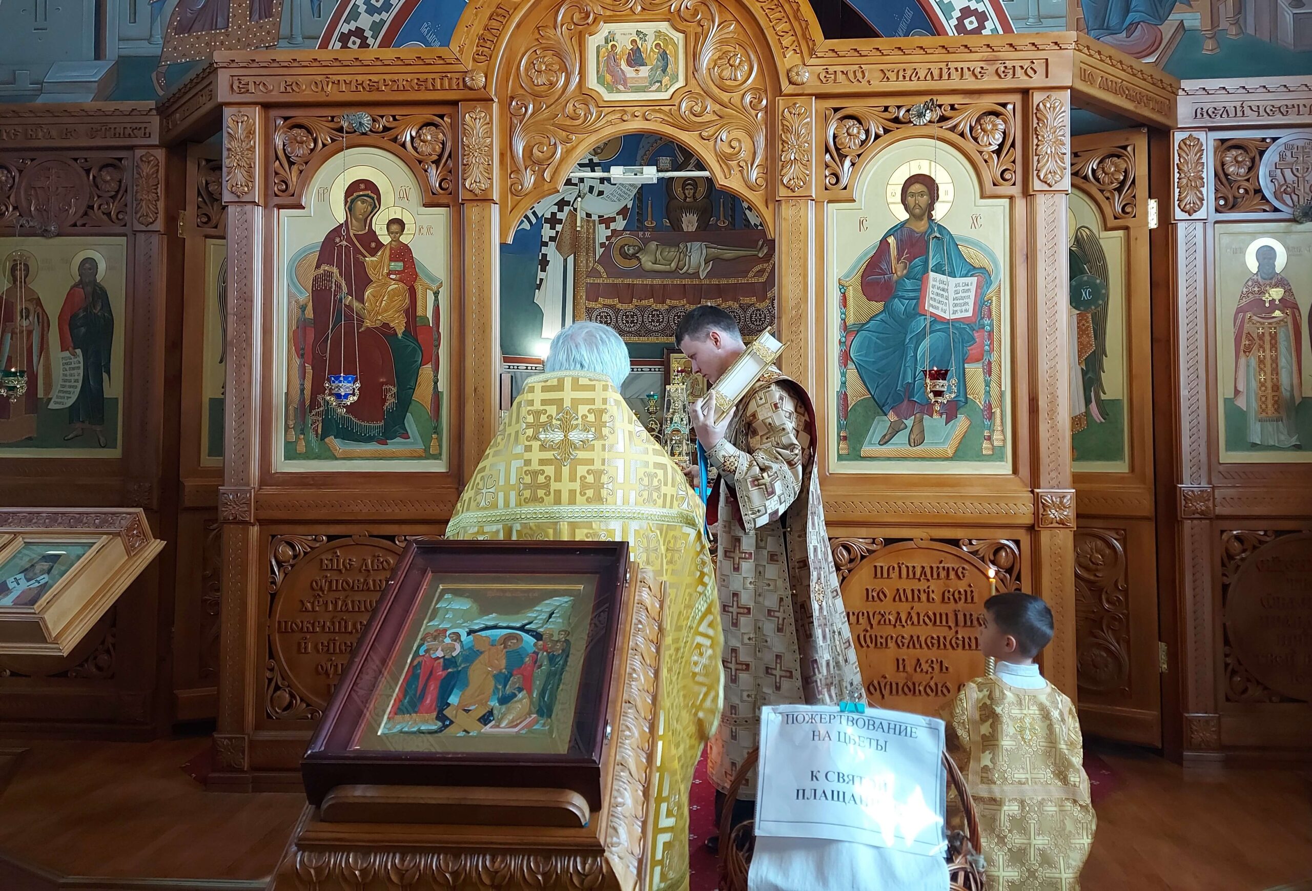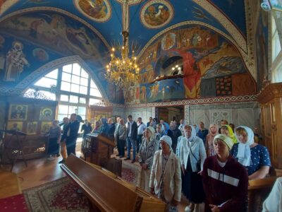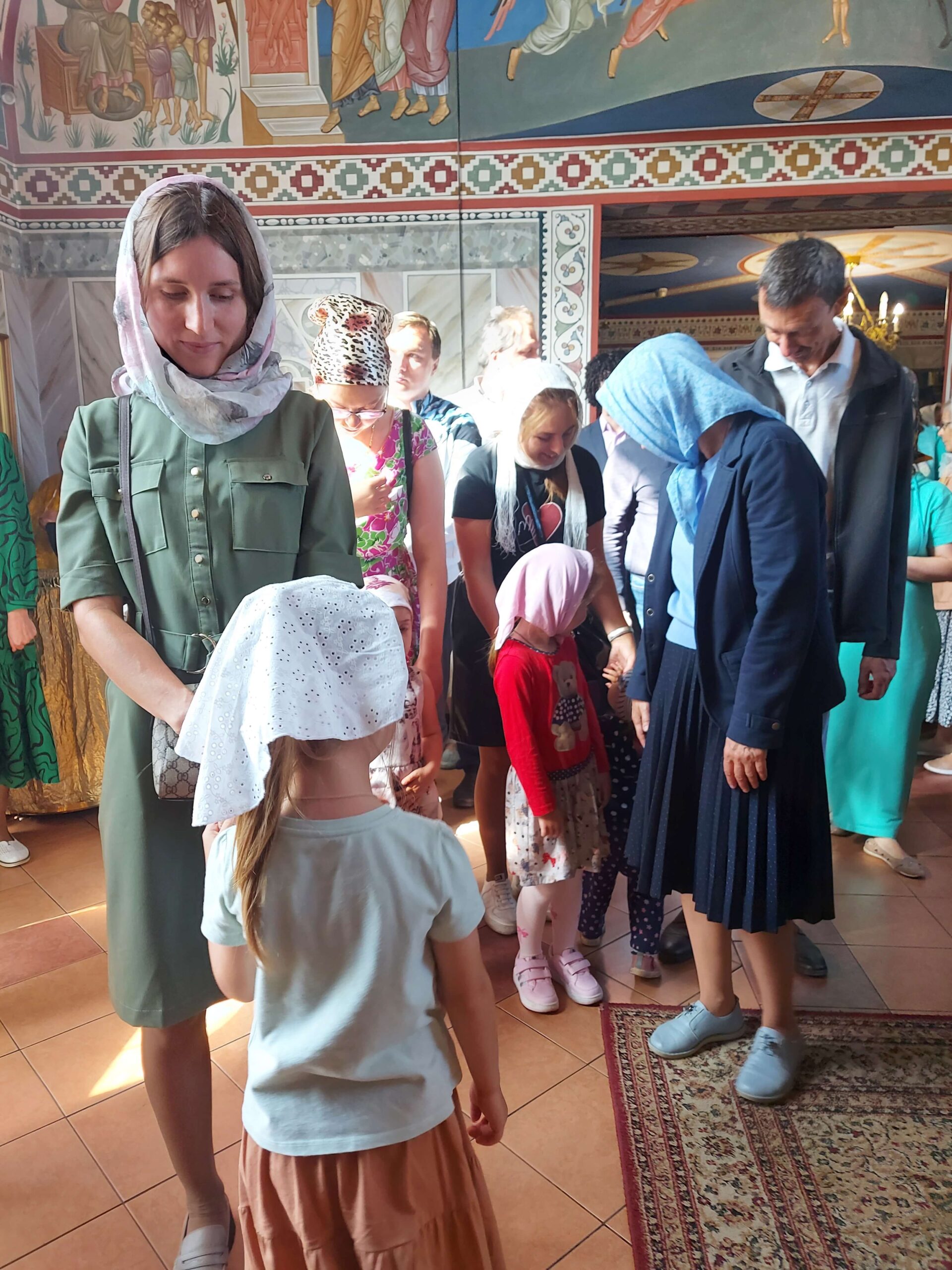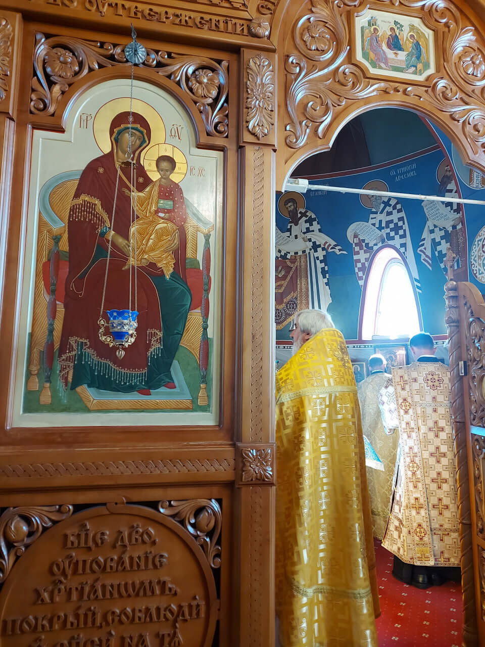 27 августа 2023 года, в Неделю 12-ю по Пятидесятнице, предпразднство Успения Пресвятой Богородицы, Божественную литургию в храме святого праведного Иоанна Кронштадтского на Кронштадтской площади совершил настоятель храма протоиерей Михаил Подолей в сослужении клира.