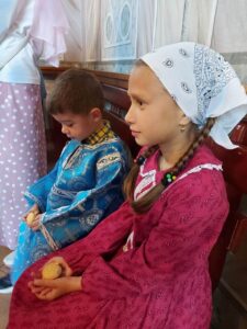 После великого славословия был совершен крестный ход вокруг храма с плащаницей Богородицы.