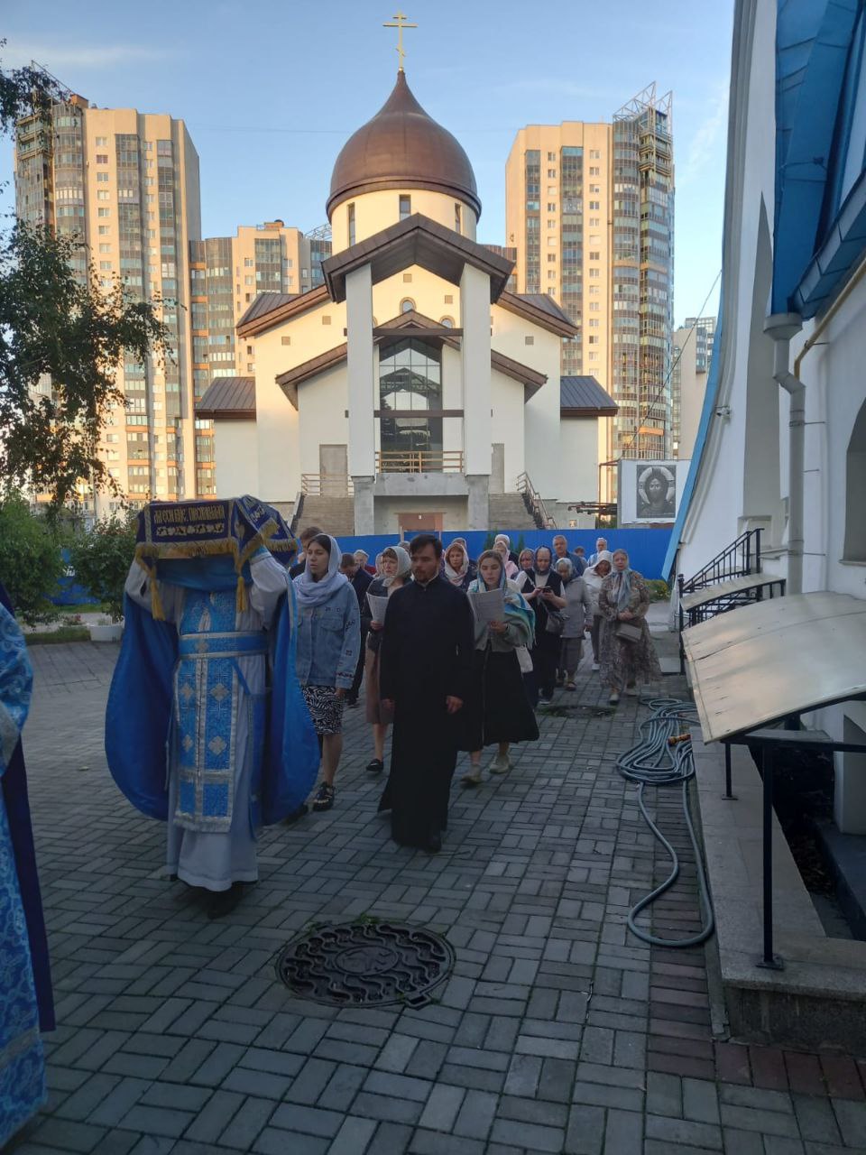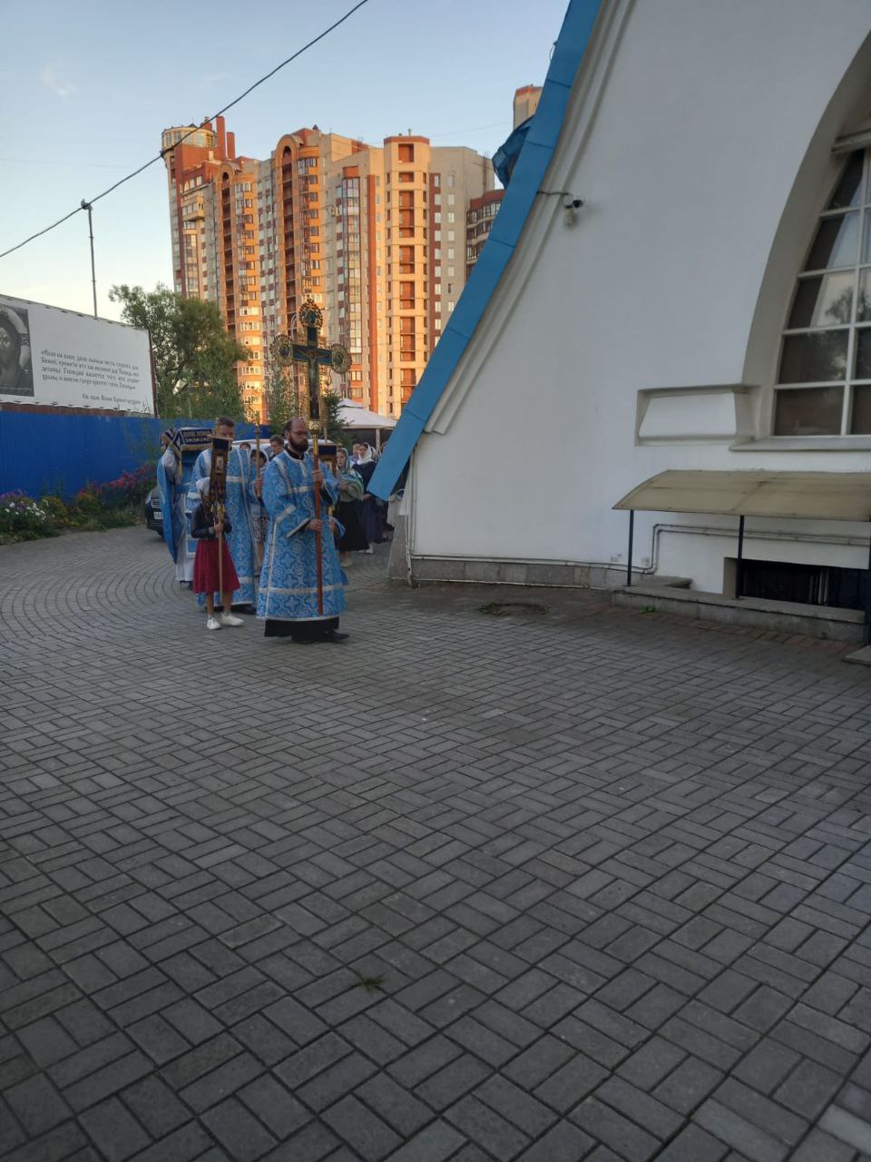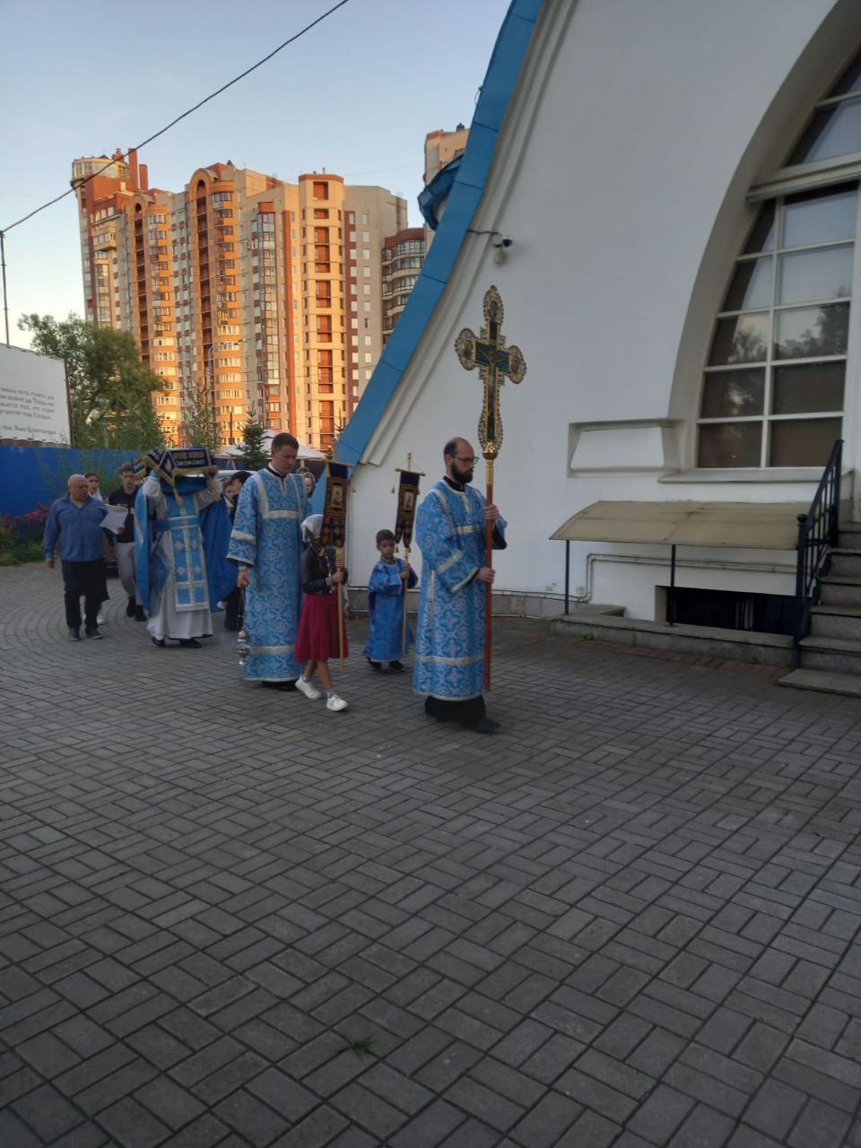 29 августа 2023 года вечернее богослужение в храме святого праведного Иоанна Кронштадтского на Кронштадтской площади совершил настоятель храма протоиерей Михаил Подолей в сослужении клира. Был совершен Чин погребения — полное название «Похвала, или священное последование на святое преставление Пресвятой Владычицы нашей Богородицы и Приснодевы Марии».
