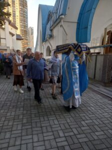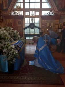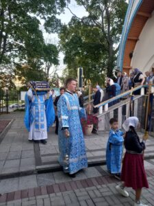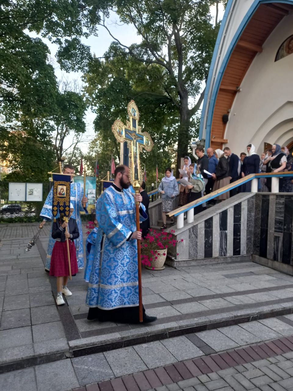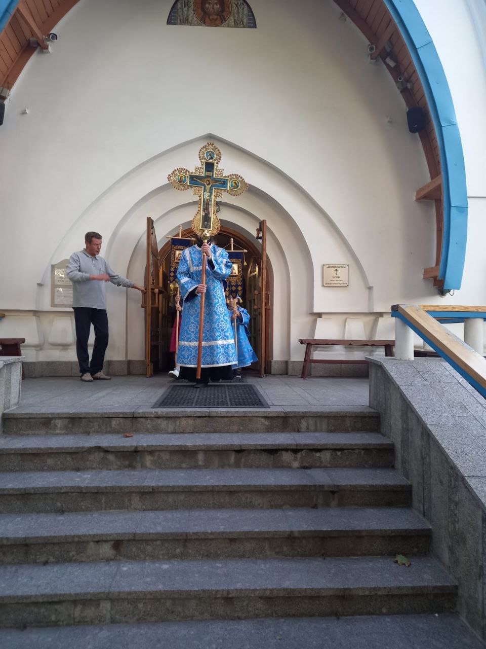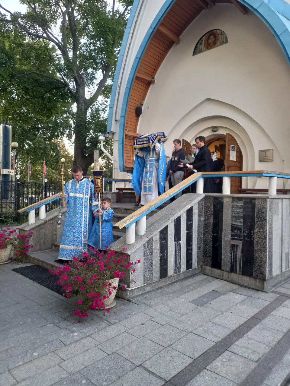 29 августа 2023 года вечернее богослужение в храме святого праведного Иоанна Кронштадтского на Кронштадтской площади совершил настоятель храма протоиерей Михаил Подолей в сослужении клира. Был совершен Чин погребения — полное название «Похвала, или священное последование на святое преставление Пресвятой Владычицы нашей Богородицы и Приснодевы Марии».