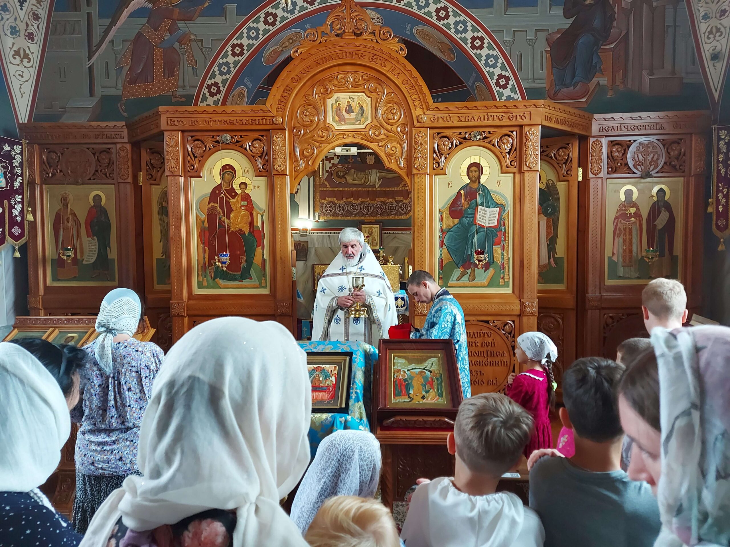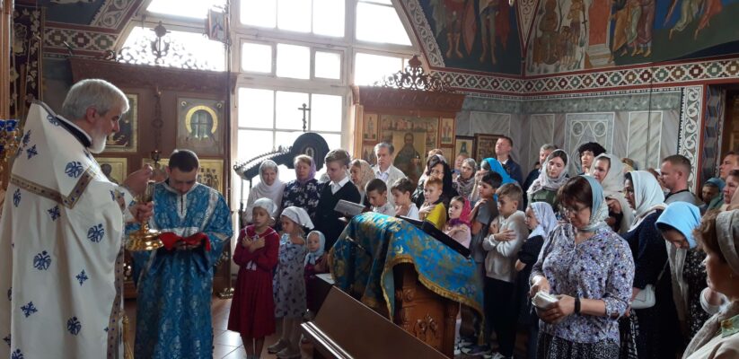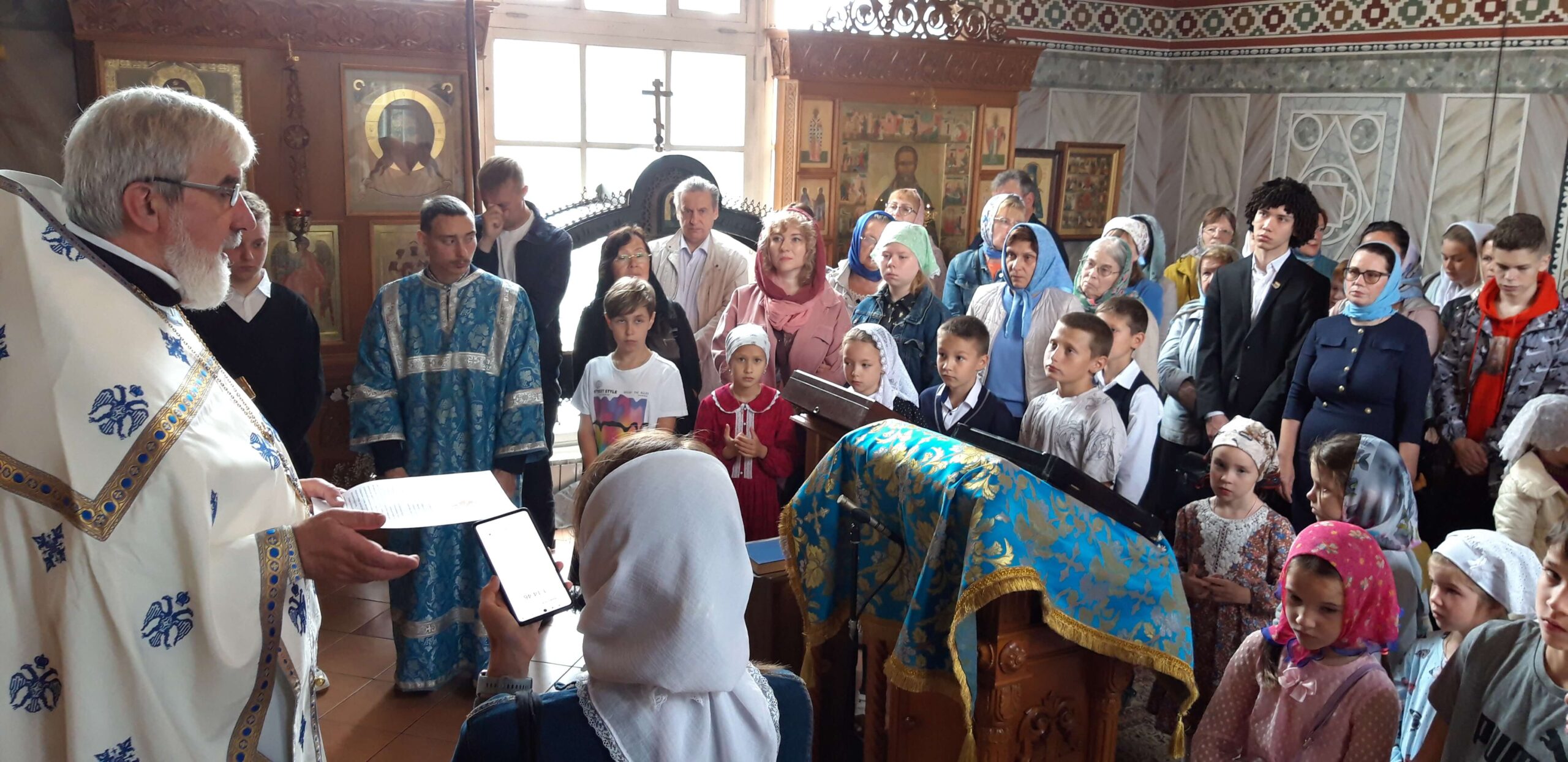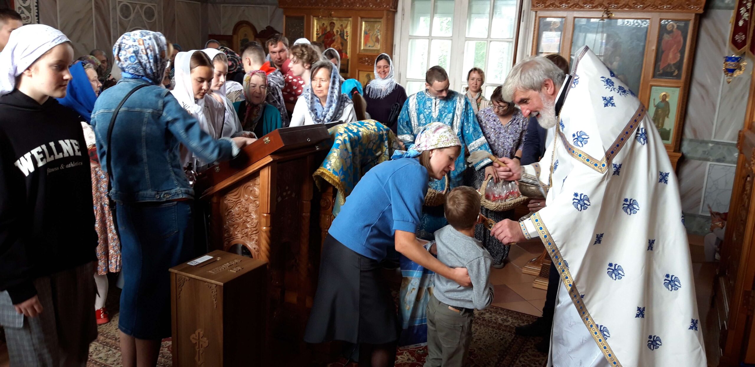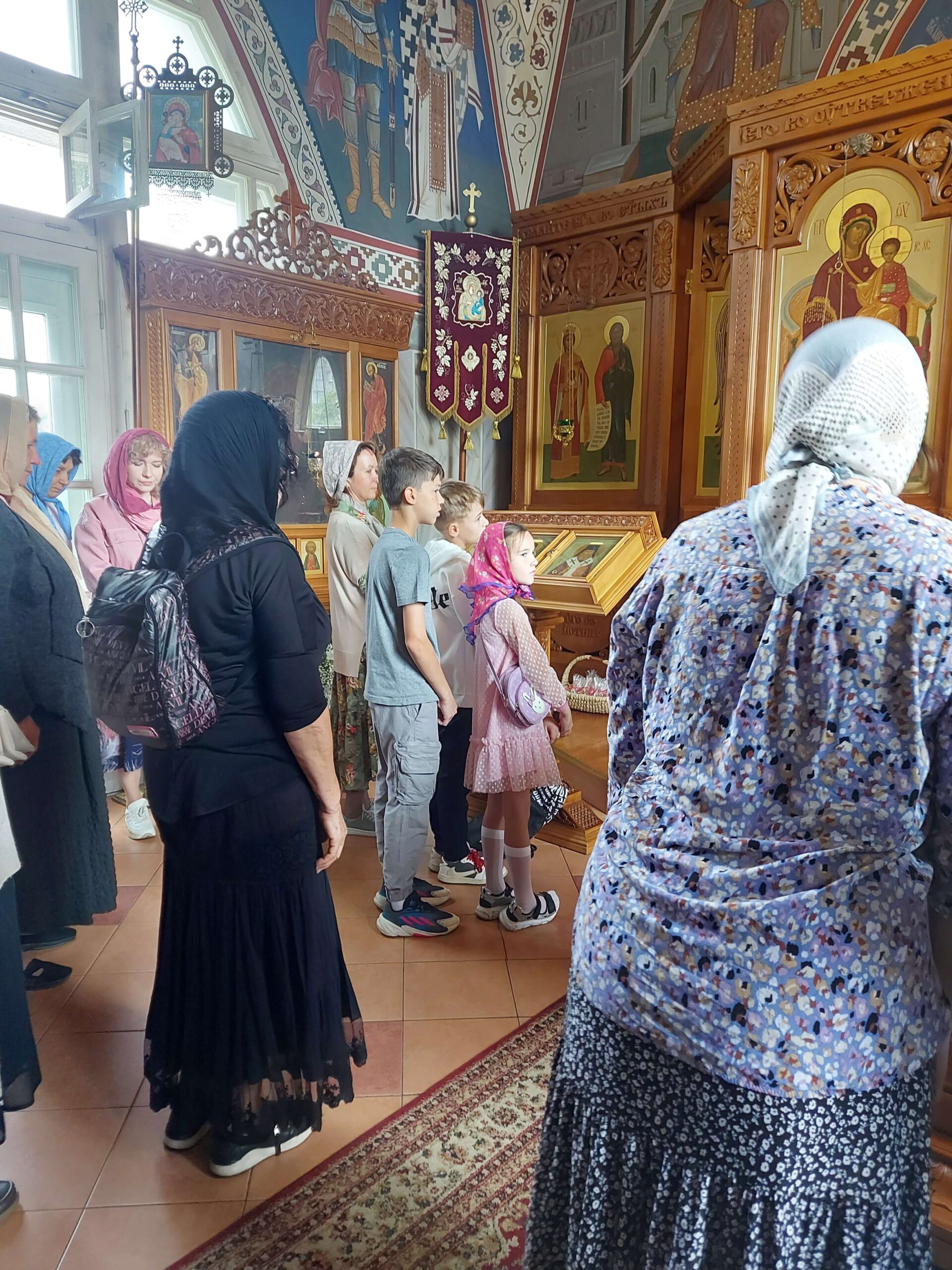 После богослужения был совершен молебен о сохранении творения Божия, а также на начало нового учебного года. По окончании молебна детей окропили святой водой и подарили им сладкие угощения.