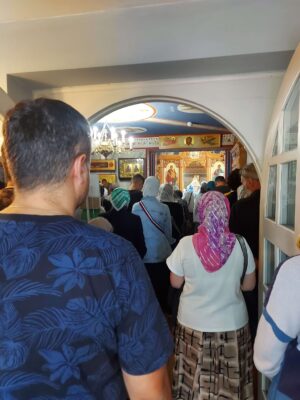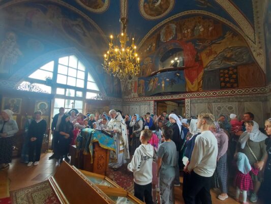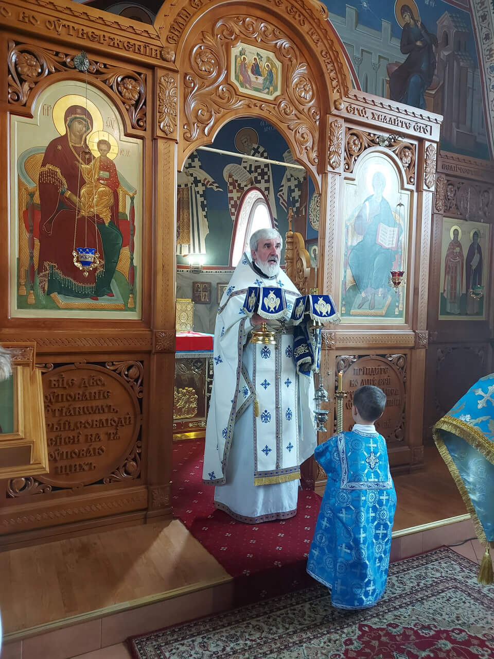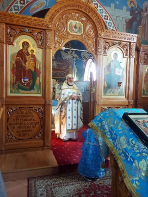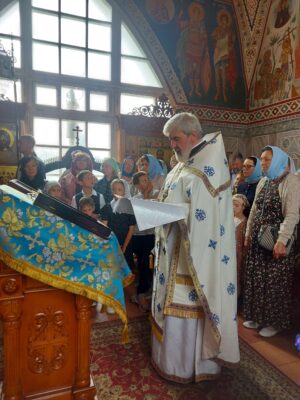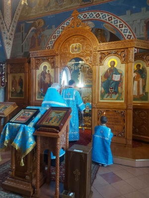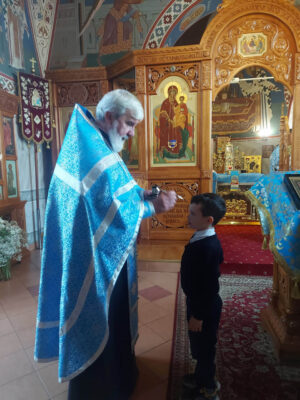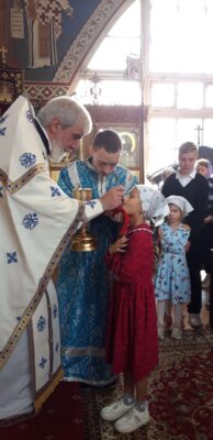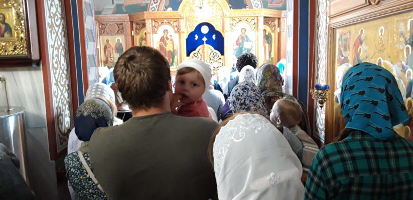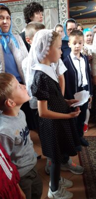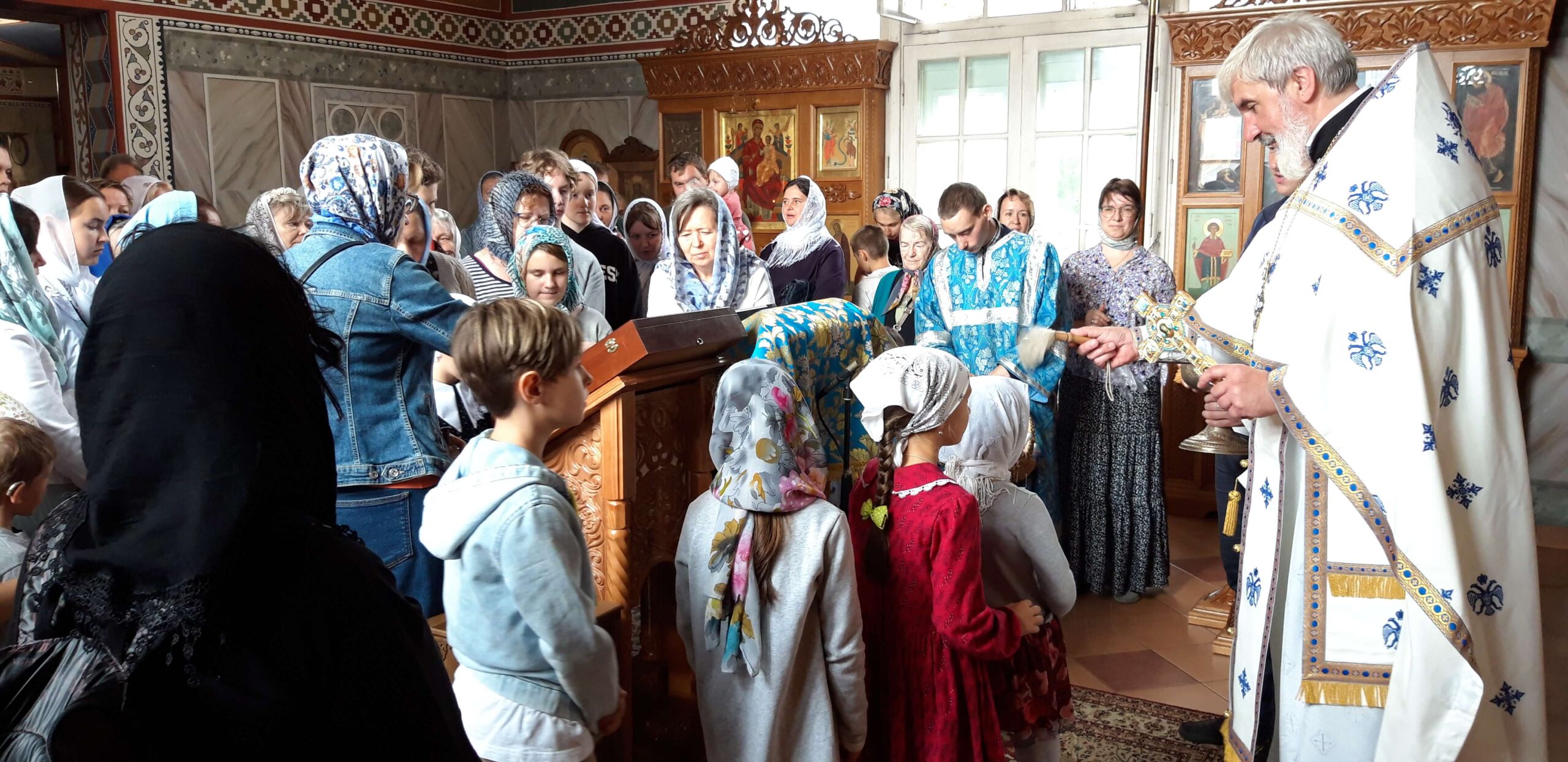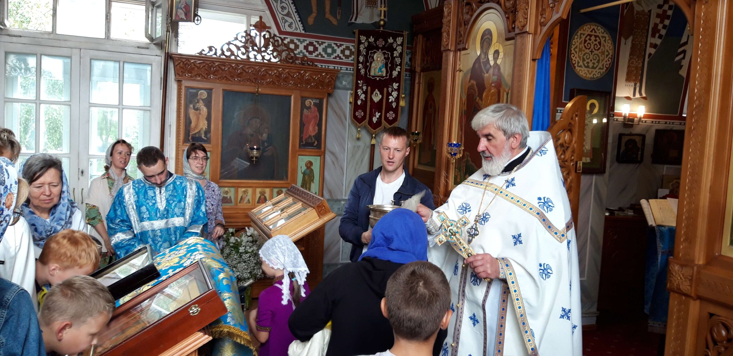 После богослужения был совершен молебен о сохранении творения Божия, а также на начало нового учебного года. По окончании молебна детей окропили святой водой и подарили им сладкие угощения.