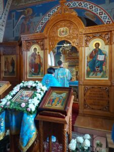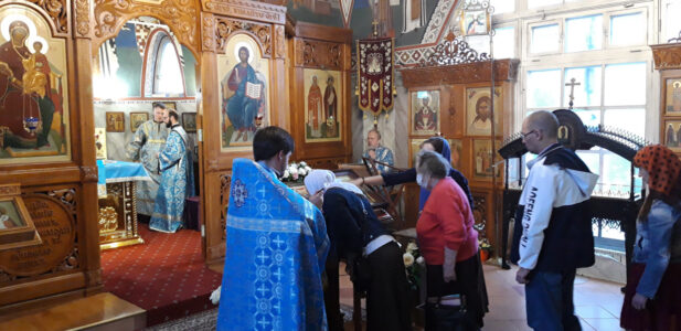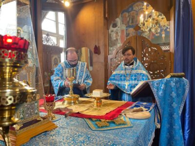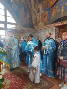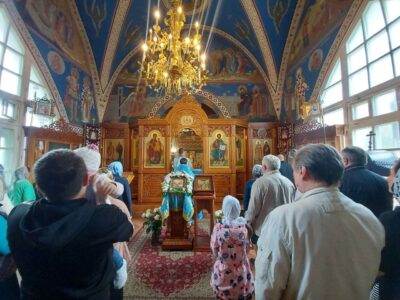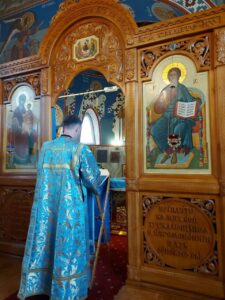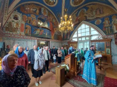 24 сентября 2023 года, в Неделю 16-ю по Пятидесятнице, пред Воздвижением, Божественную литургию в храме святого праведного Иоанна Кронштадтского на Кронштадтской площади совершил иерей Константин Подолей в сослужении клира.