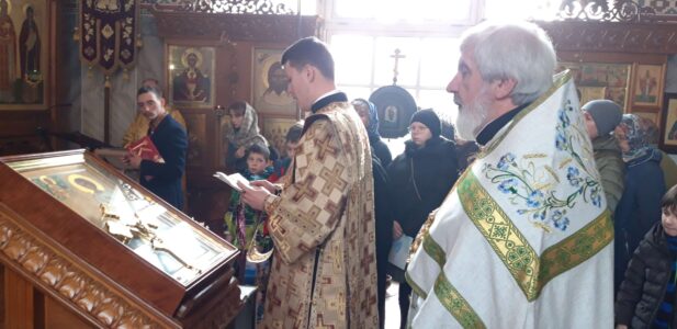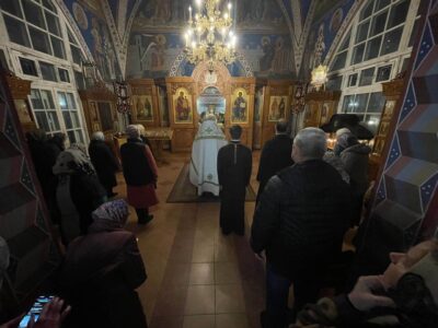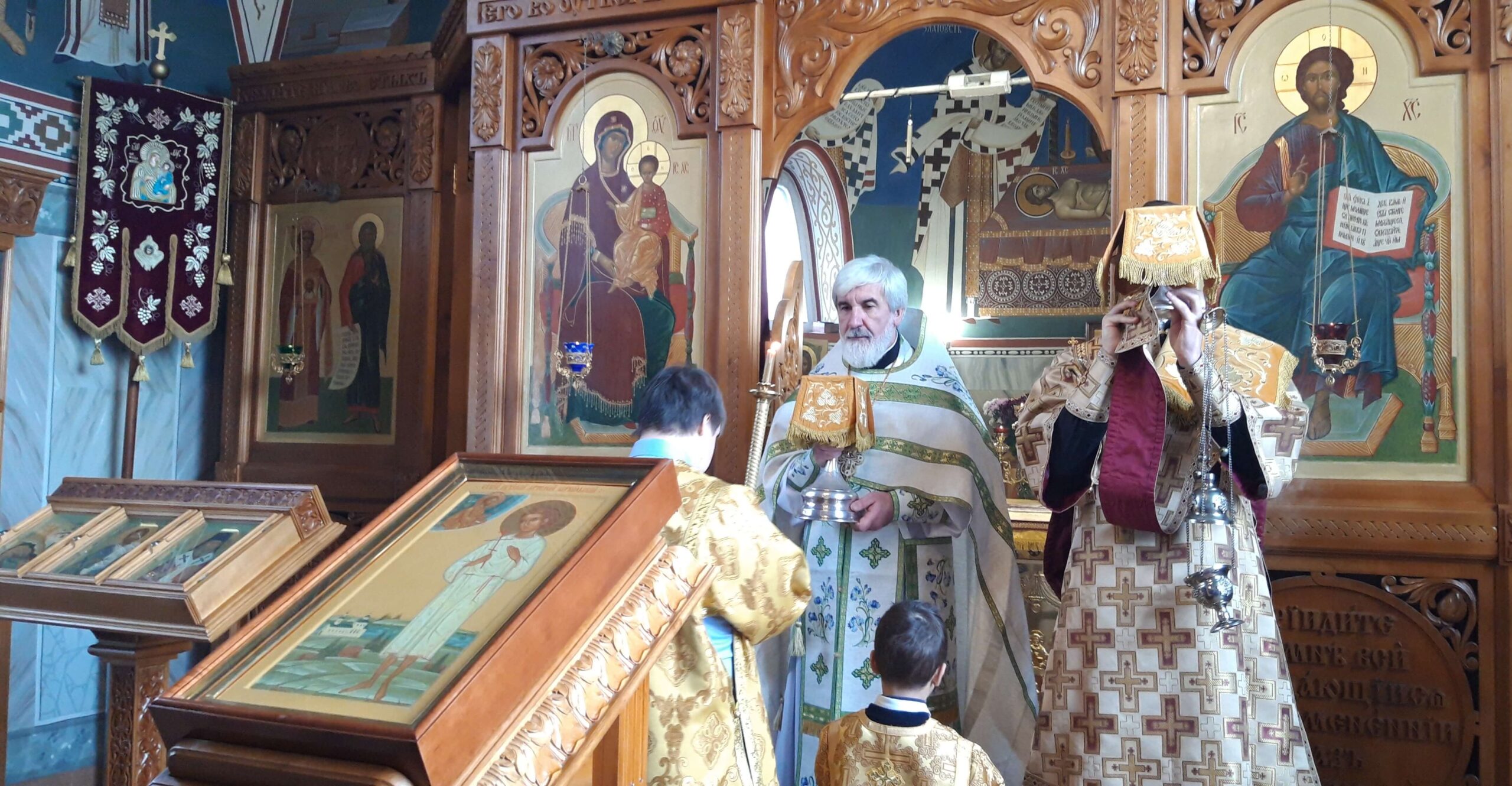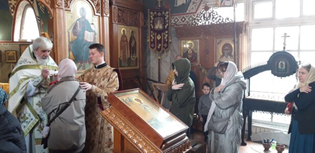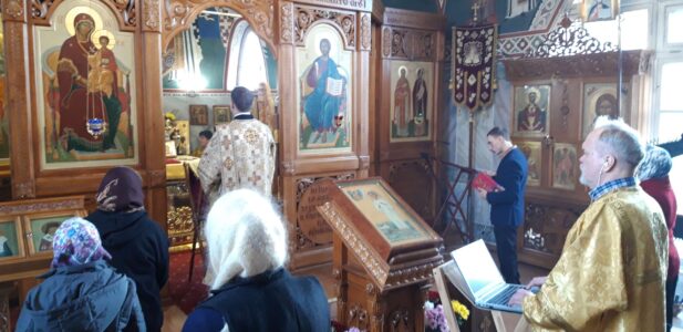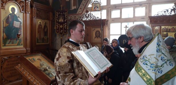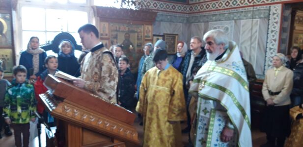 Вечером накануне акафист святому праведному отроку Артемию Веркольскому, который составил святой праведный Иоанн Кронштадтский, прочитал также настоятель храма протоиерей Михаил Подолей.