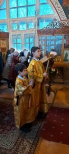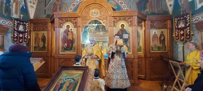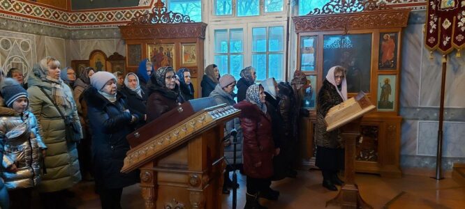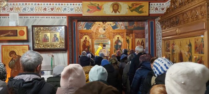 3 декабря 2023 года, в Неделю 26-ю по Пятидесятнице, предпразднство Введения в храм Пресвятой Богородицы, Божественную литургию в храме святого праведного Иоанна Кронштадтского на Кронштадтской площади совершил настоятель храма протоиерей Михаил Подолей в сослужении клира.