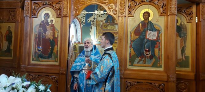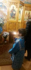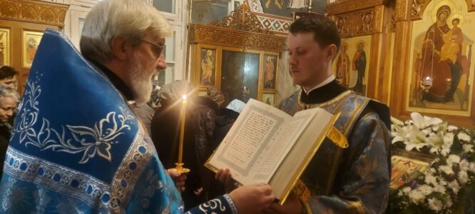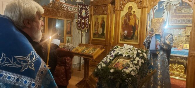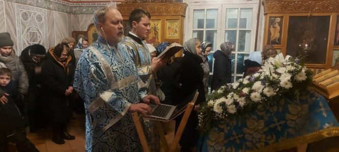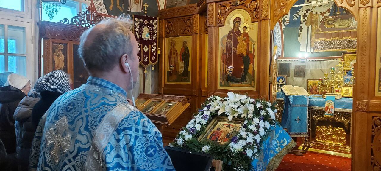 4 декабря 2023 года, в праздник Введения во храм Пресвятой Богородицы, Божественную литургию, а также Всенощное бдение накануне вечером, в храме святого праведного Иоанна Кронштадтского на Кронштадтской площади совершил настоятель храма протоиерей Михаил Подолей в сослужении клира.