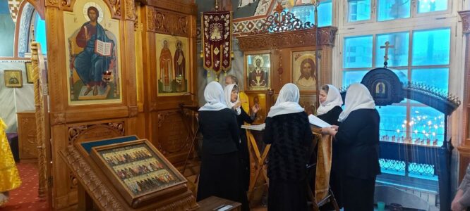 За богослужением пел хор прихода храма святого праведного Иоанна Кронштадтского под управлением регента Марины Паниной.