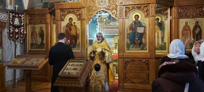 23 декабря 2023 года, в субботу седмицы 29-й по Пятидесятнице, Божественную литургию в храме святого праведного Иоанна Кронштадтского на Кронштадтской площади совершил настоятель храма протоиерей Михаил Подолей.