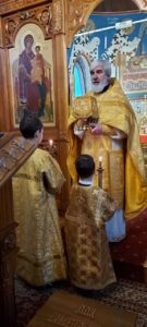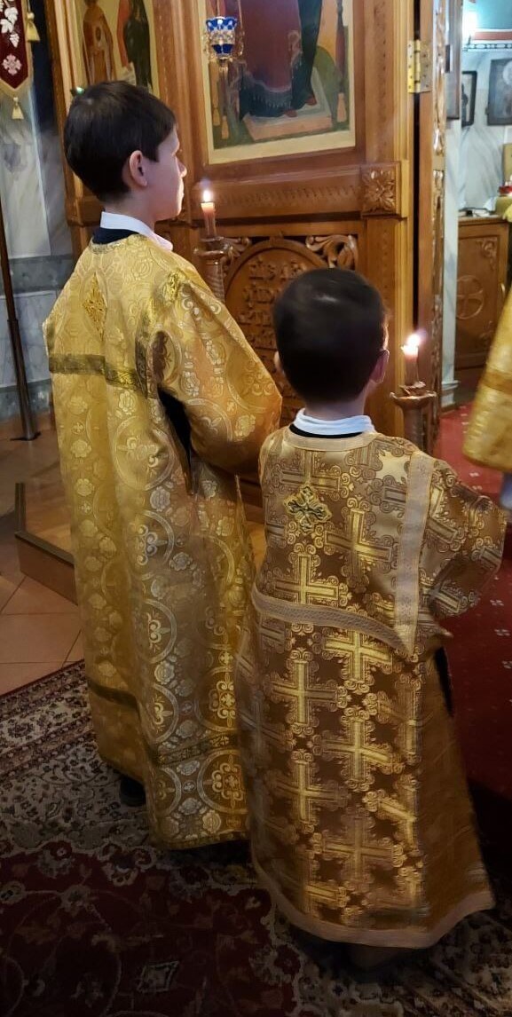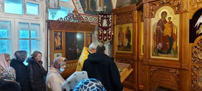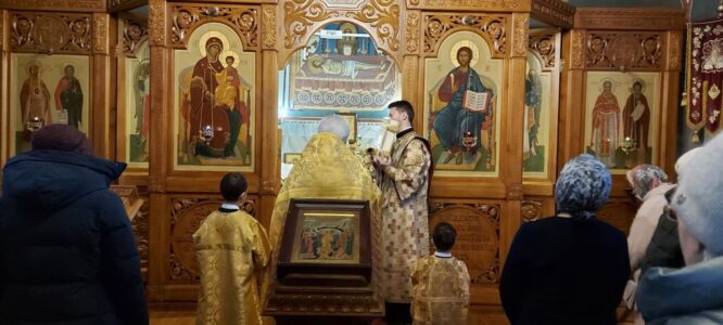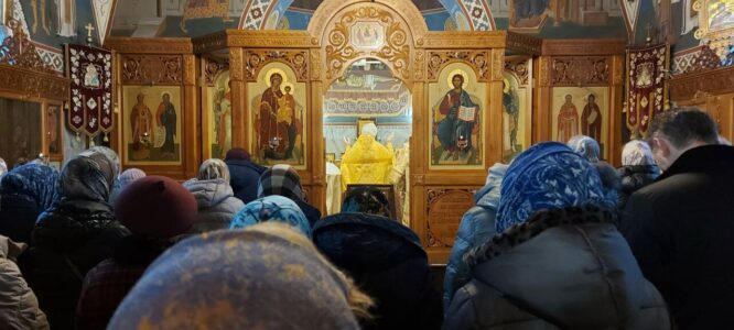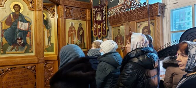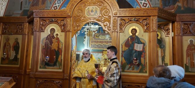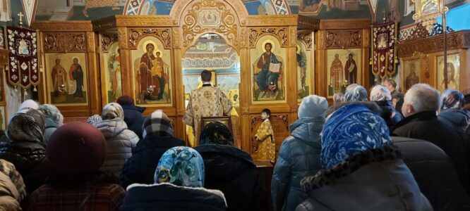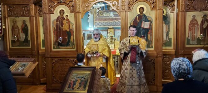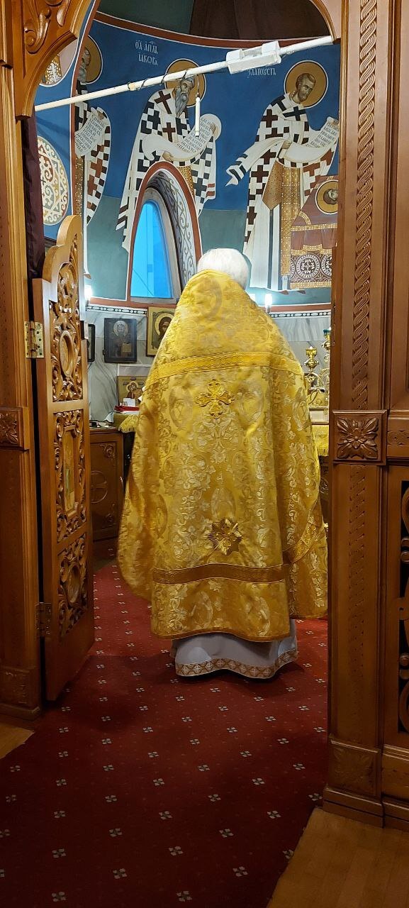 24 декабря 2023 года, в Неделю 29-ю по Пятидесятнице, святых праотец, Божественную литургию в храме святого праведного Иоанна Кронштадтского на Кронштадтской площади совершил настоятель храма протоиерей Михаил Подолей в сослужении клира.