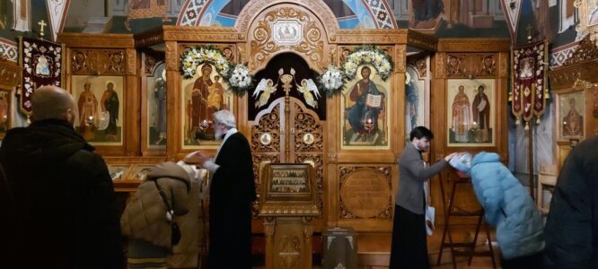 Вечером 5 января 2024 года, в преддверии праздника Рождества Христова, Уставную службу в храме святого праведного Иоанна Кронштадтского на Кронштадтской площади совершил настоятель храма протоиерей Михаил Подолей в сослужении клира.
