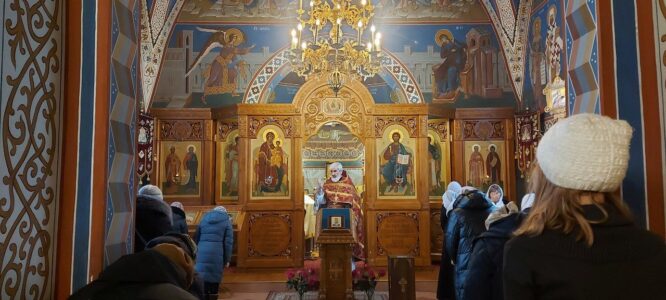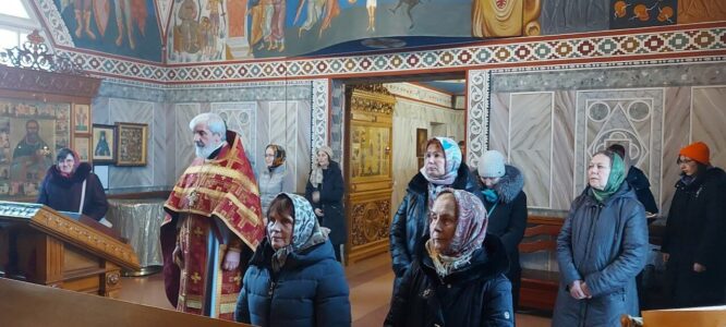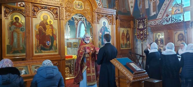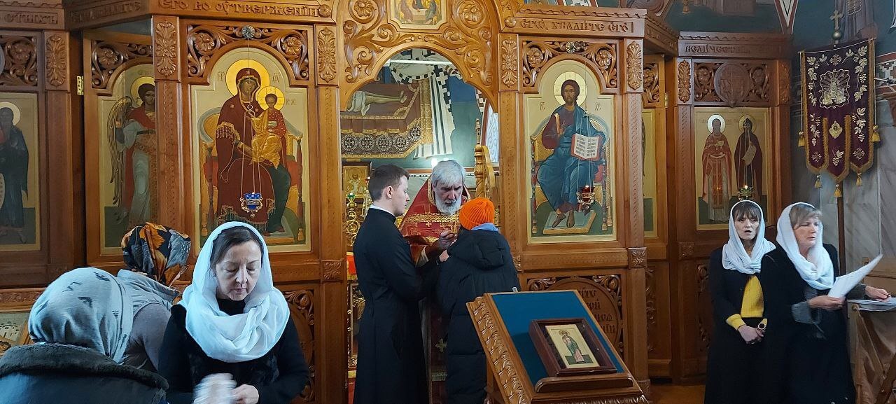 3 февраля 2024 года, в субботу седмицы 35-й по Пятидесятнице, день памяти мученицы Агнии девы, Божественную литургию в храме святого праведного Иоанна Кронштадтского на Кронштадтской площади совершил настоятель храма протоиерей Михаил Подолей.