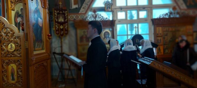 За богослужением пел любительский хор прихода храма святого праведного Иоанна Кронштадтского под управлением регента Марины Паниной.