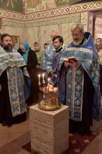 В храме святого праведного Иоанна Кронштадтского накануне праздника было совершено Всенощное бдение с пением акафиста Покрову Пресвятой Богородицы, а в сам день праздника, 14 октября, — Божественная литургия.