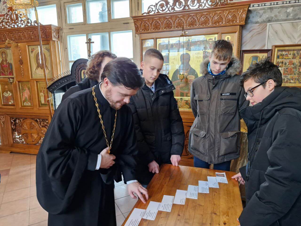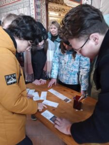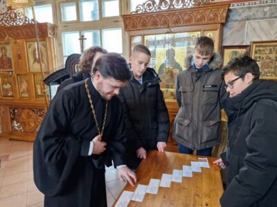 Совместно с методистом ГБУ «Информационно-методического центра» Красносельского района Хватковой Эльвирой Рифкатовной, ребята выполнили интересное задание по истории праздника Сретения Господня и разгадали слова молитвы Симеона Богоприимца, используя специальный шифр. По окончании мероприятия школьники оставили письменные отзывы о встрече, отмечая те знания, которые они получили в ходе мероприятия.
