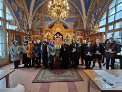 С приветственным словом перед учащимися выступил директор Центра духовной культуры и образования Красносельского благочиннического округа, клирик храма иерей Константин Подолей. В своем выступлении он рассказал об истории праздника, о его значении в жизни каждого из нас, о предании церкви о Симеоне Богоприимце, а также о самой главной заповеди, которую дал нам Господь наш Иисус Христос, — возлюбить ближнего своего, как самого себя.