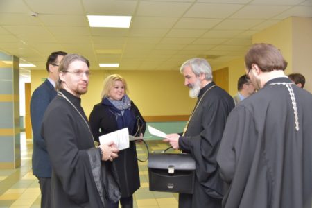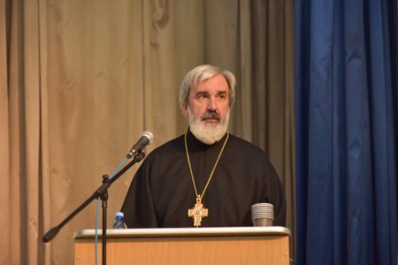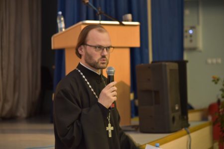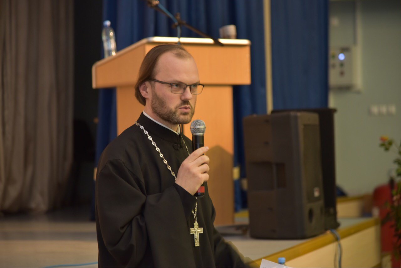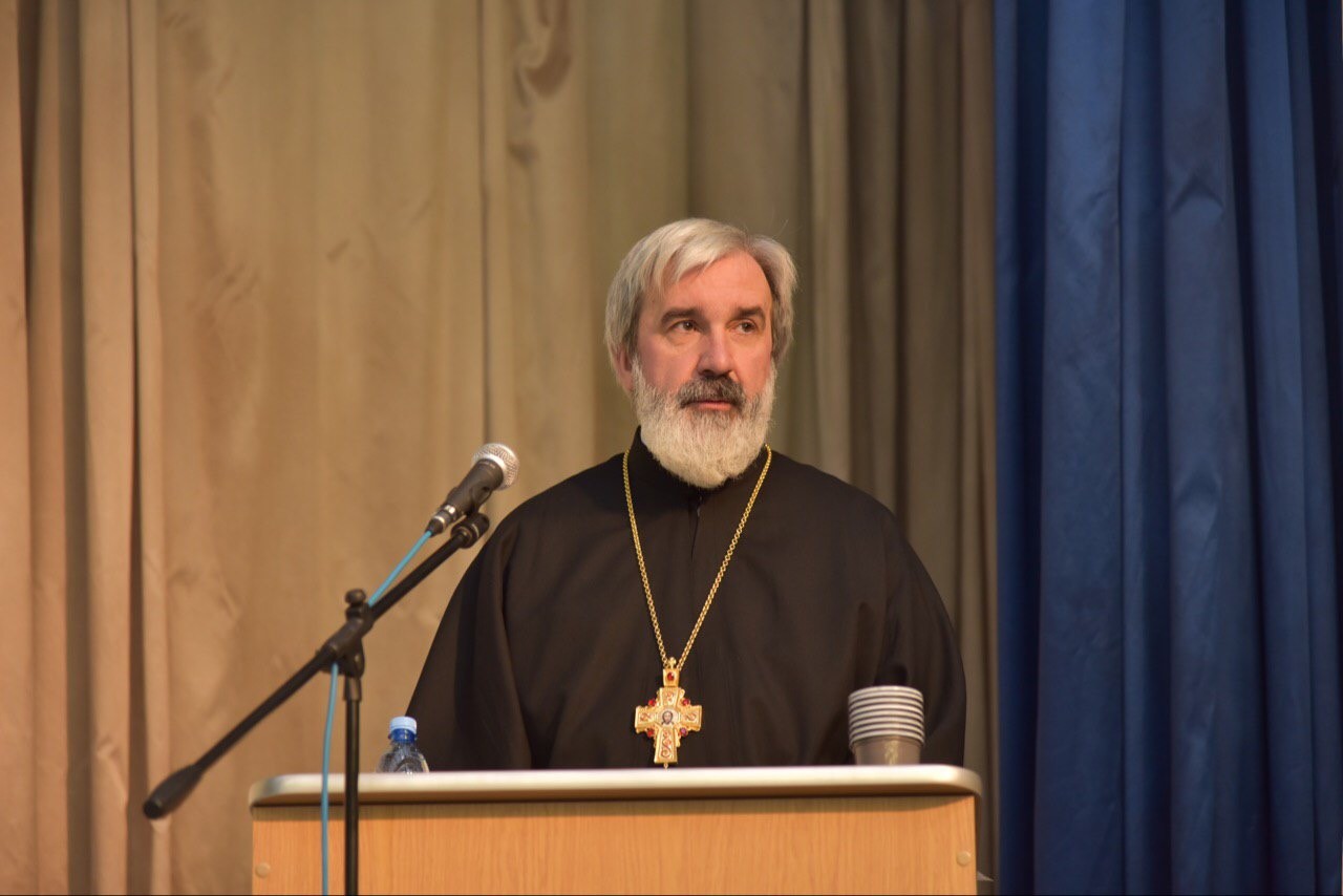 Далее с приветственным словом обратился благочинный Красносельского округа Санкт-Петербургской епархии протоиерей Михаил Подолей, который является инициатором и организатором конференции.