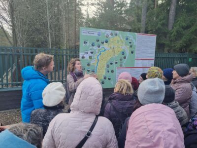 Экскурсия началась с Московской площади. Уже там гид Вера Шамаева очень интересно рассказала об истории Московского проспекта, о системе обороны Ленинграда на ближних подступах с юга и юго-запада по линии Петергоф-Пулково. Сам Мемориальный комплекс поразил масштабами замысла и особой атмосферой глубокой скорби. Ещё не о всех людях, фигуры которых расположены вокруг центральной стелы, собраны материалы, но никого из присутствующих не оставили равнодушным судьбы тех, о ком было рассказано. Перевод местных экскурсоводов на РЖЯ осуществляли Лидия Пиличева и Елизавета Захарьина.