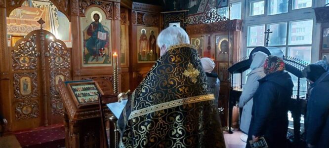 17 апреля 2024 года, в среду 5-й седмицы Великого поста, в храме святого праведного Иоанна Кронштадтского на Кронштадтской площади настоятель храма протоиерей Михаил Подолей совершил утреню с чтением Великого канона преподобного Андрея Критского. За богослужением было прочитано житие преподобной Марии Египетской.