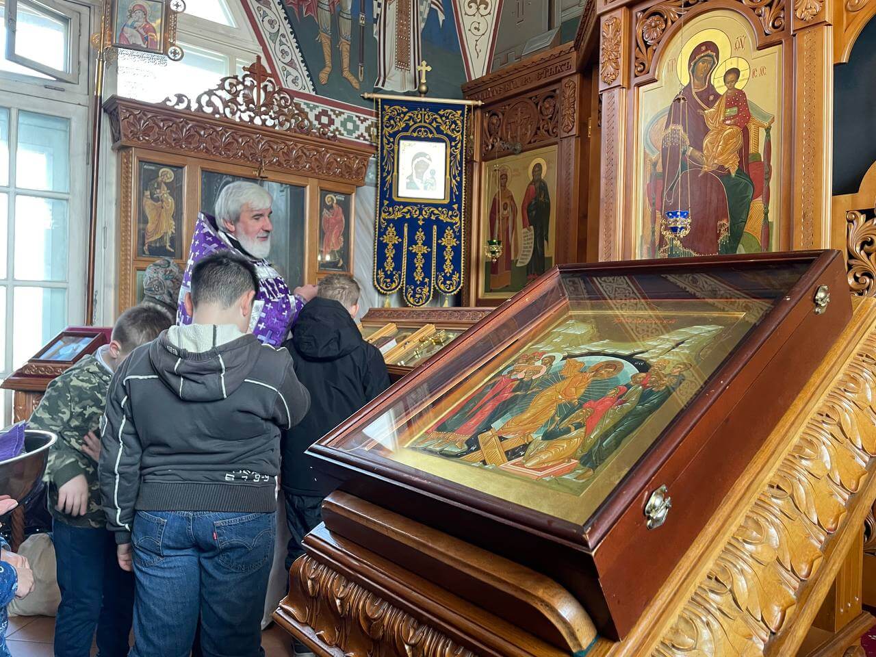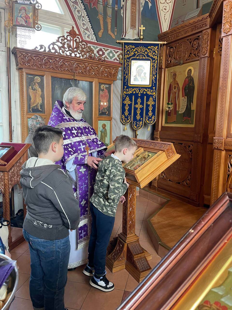 21 апреля 2024 года, в Неделю 5-ю Великого поста, преподобной Марии Египетской, Божественную литургию в храме святого праведного Иоанна Кронштадтского на Кронштадтской площади совершил настоятель храма протоиерей Михаил Подолей в сослужении клира.