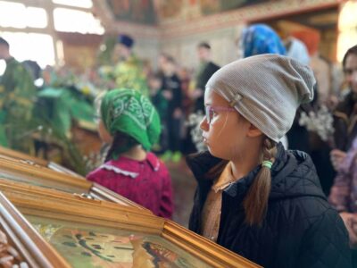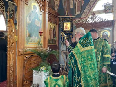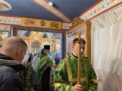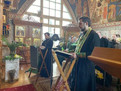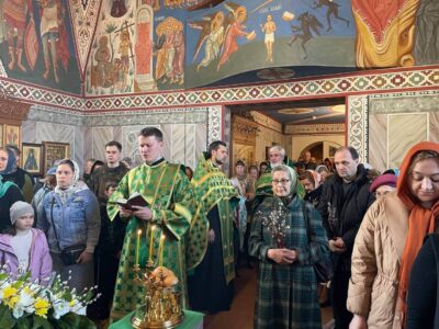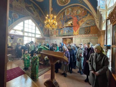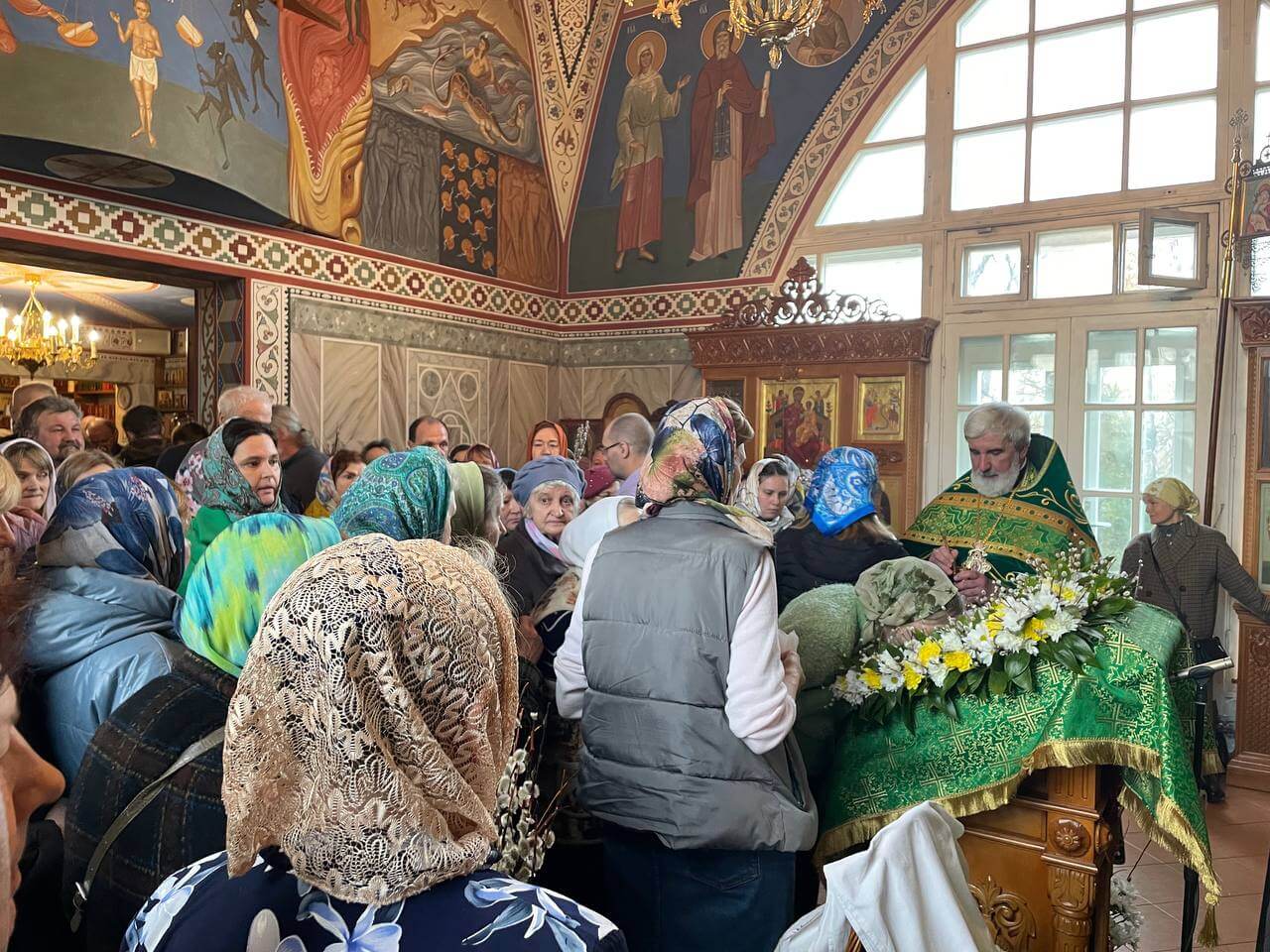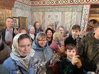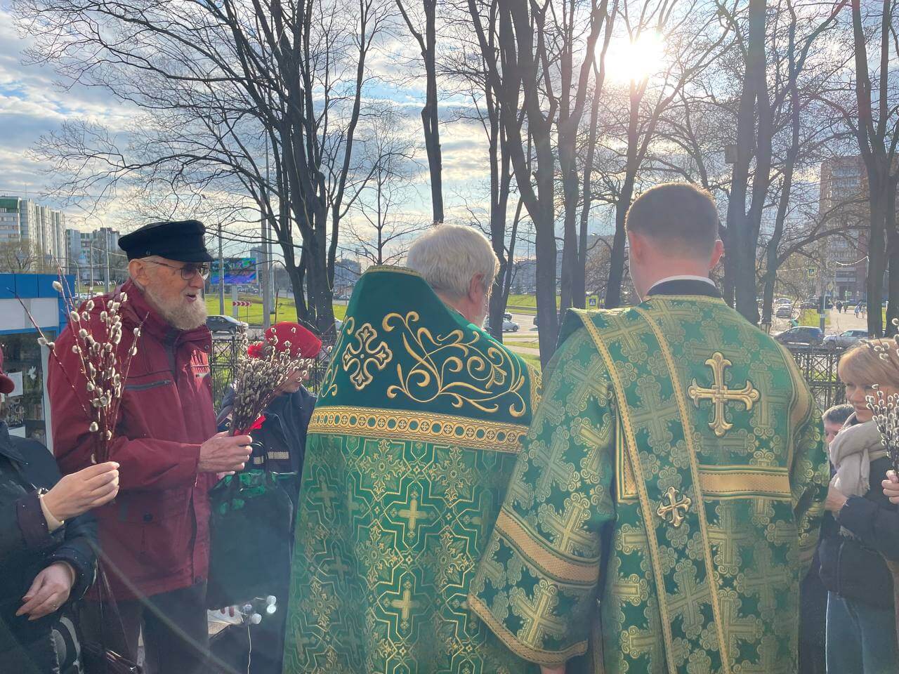 27 апреля 2024 года, в канун Недели 6-й, ваий, праздника Входа Господня в Иерусалим, в храме святого праведного Иоанна Кронштадтского на Кронштадтской пощади Всенощное бдение совершил настоятель храма протоиерей Михаил Подолей в сослужении клира. По традиции во время богослужения были освящены ветви вербы.