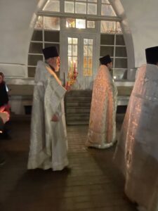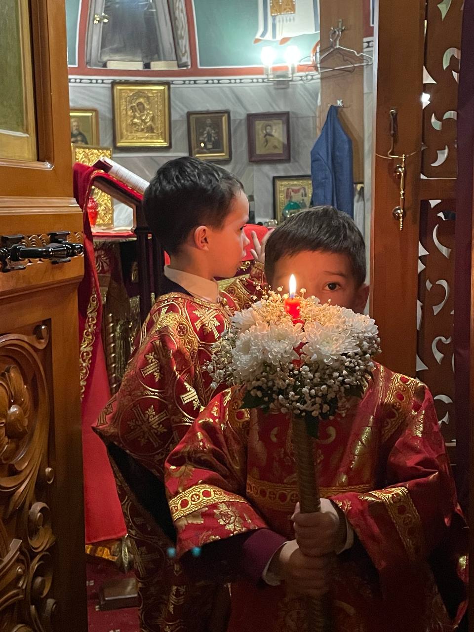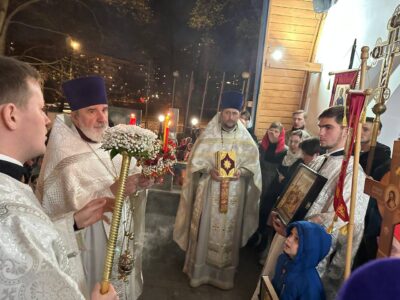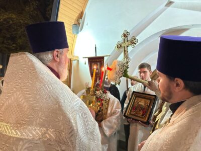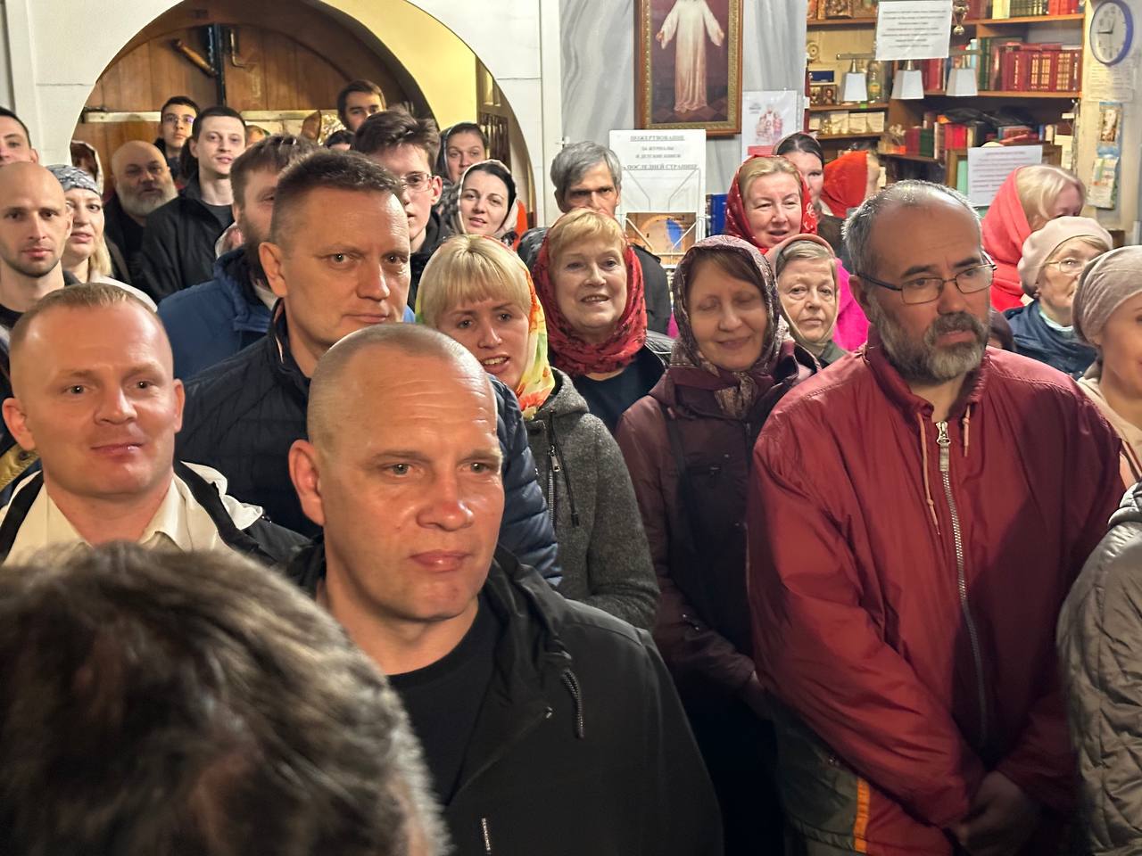 Пасхальные богослужения — полунощницу, заутреню и Божественную литургию — в ночь с 4 на 5 мая 2024 года, в храме святого праведного Иоанна Кронштадтского на Кронштадтской площади совершил настоятель храма протоиерей Михаил Подолей. Его Высокопреподобию сослужили иерей Николай Терентьев, иерей Константин Подолей, диакон Эмануил Кричфалуший.