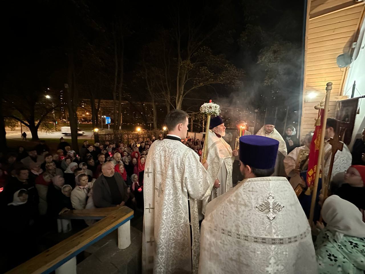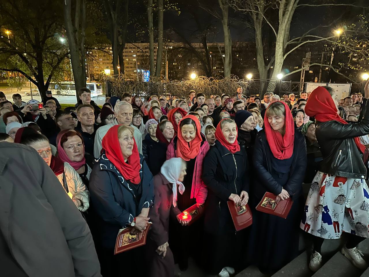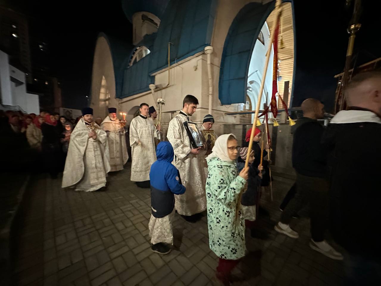 В 12 часов ночи по местному времени при пении стихиры «Воскресение Твое, Христе Спасе, ангели поют на небесех, и нас на земли сподоби, чистым сердцем Тебе славити» вокруг храма был совершен крестный ход.