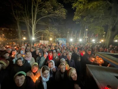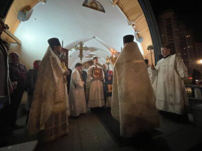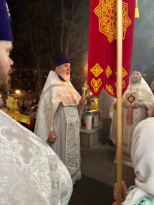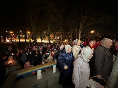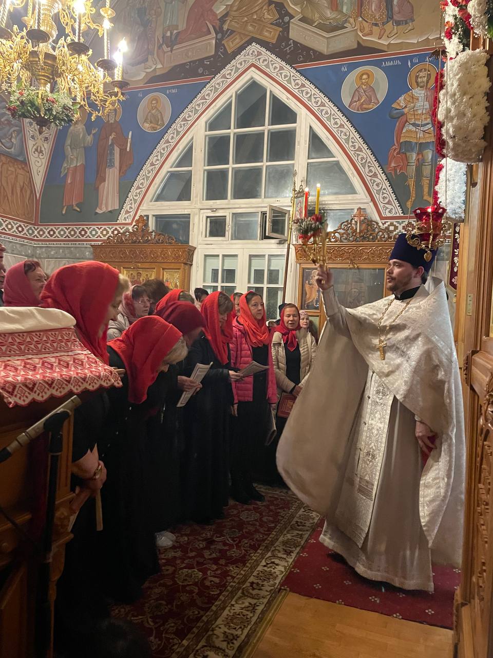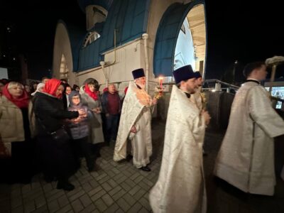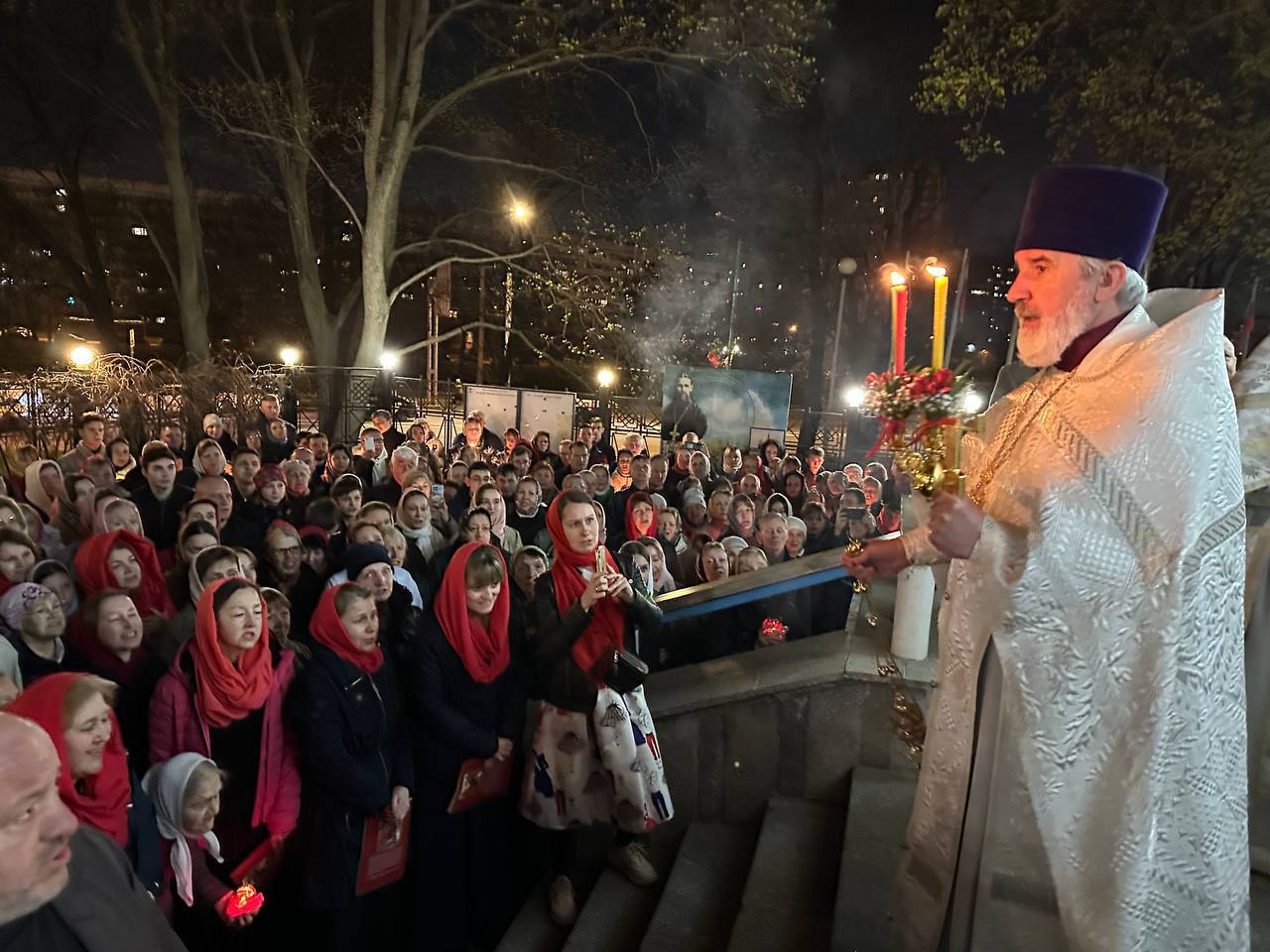 В 12 часов ночи по местному времени при пении стихиры «Воскресение Твое, Христе Спасе, ангели поют на небесех, и нас на земли сподоби, чистым сердцем Тебе славити» вокруг храма был совершен крестный ход.