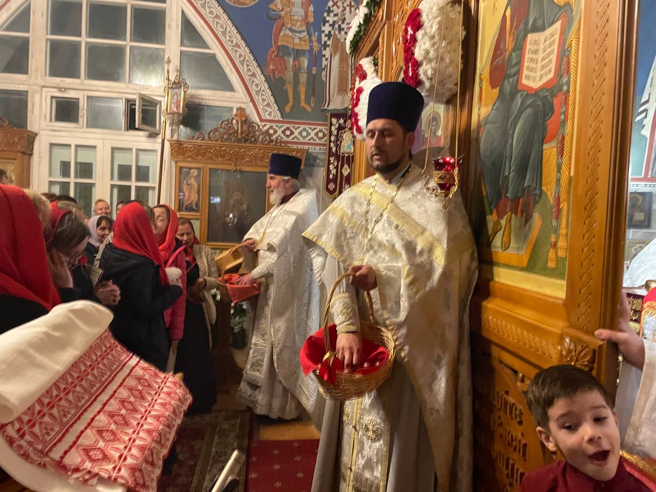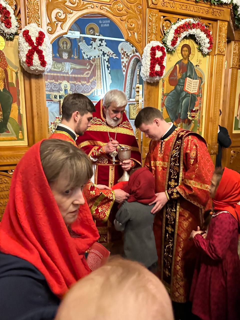 После богослужения настоятель храма протоиерей Михаил Подолей поздравил всех прихожан с праздником Светлого Христова Воскресения и огласил пасхальное послание Святейшего Патриарха Кирилла архипастырям, пастырям, диаконам, монашествующим и всем верным чадам Русской Православной Церкви.