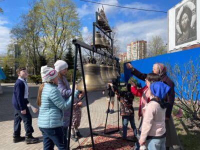 Желающие дети после завершения поздравлений позвонили в колокола, возвещая миру пасхальную радость.