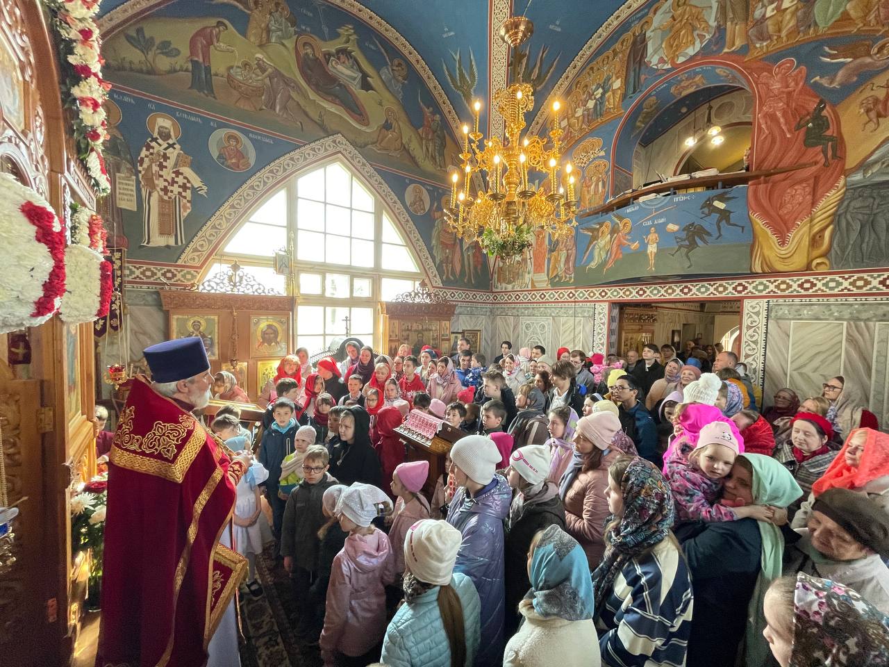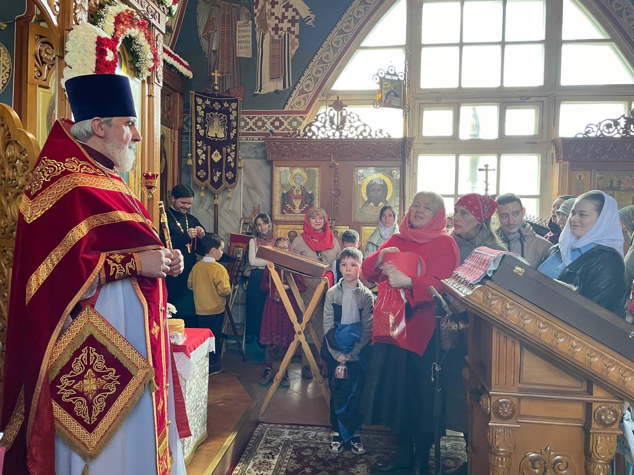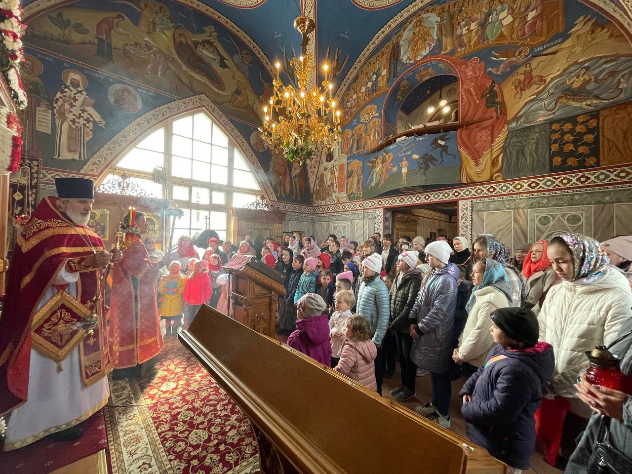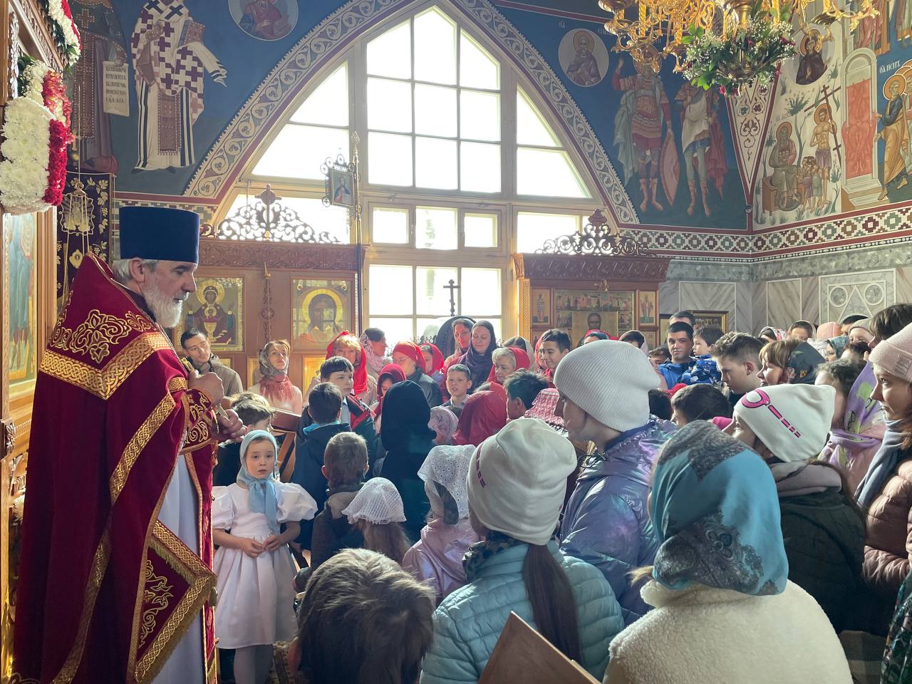 После богослужения настоятель храма обратился к прихожанам и воспитанникам воскресной школы «София» с поздравлением.