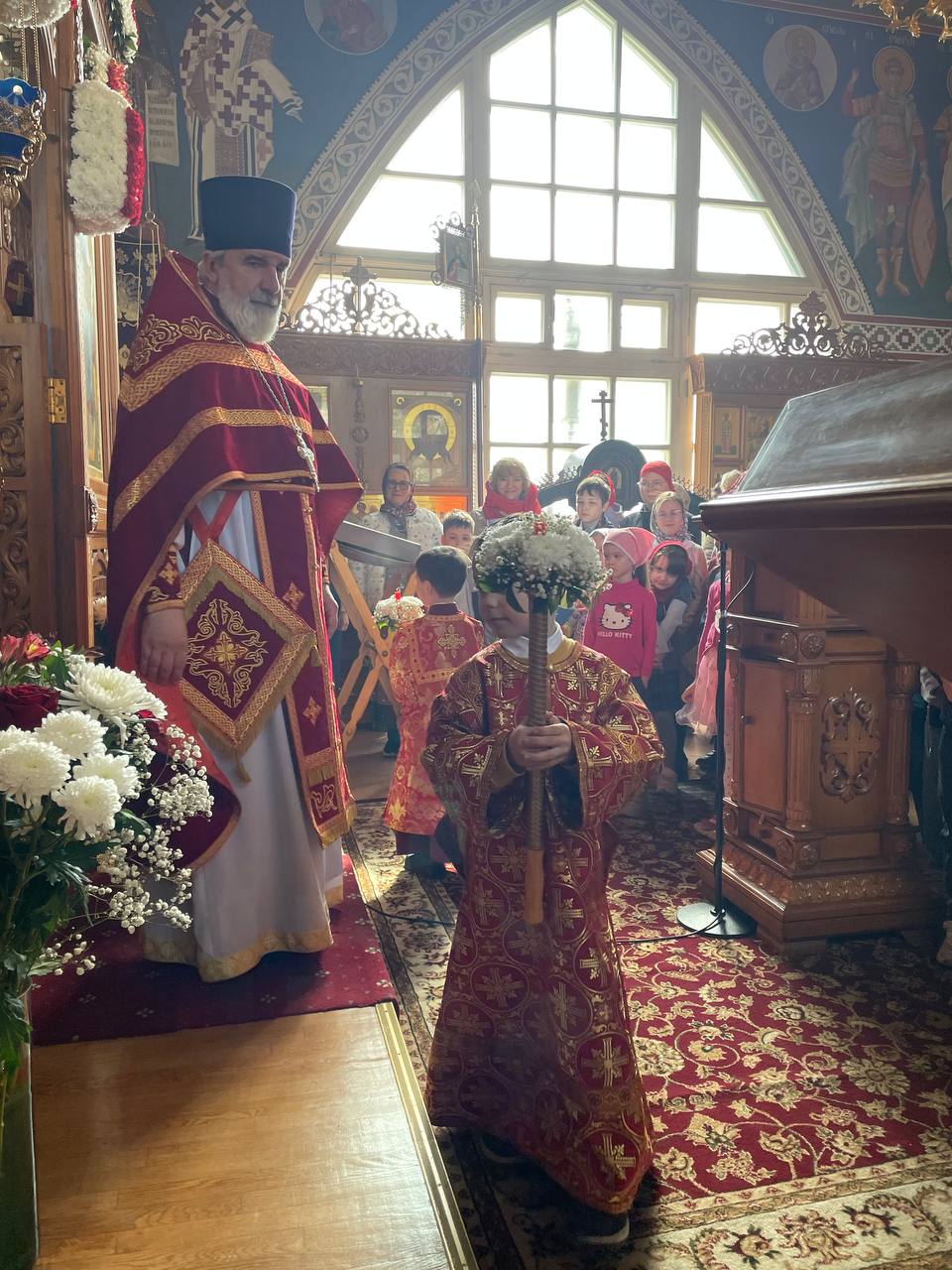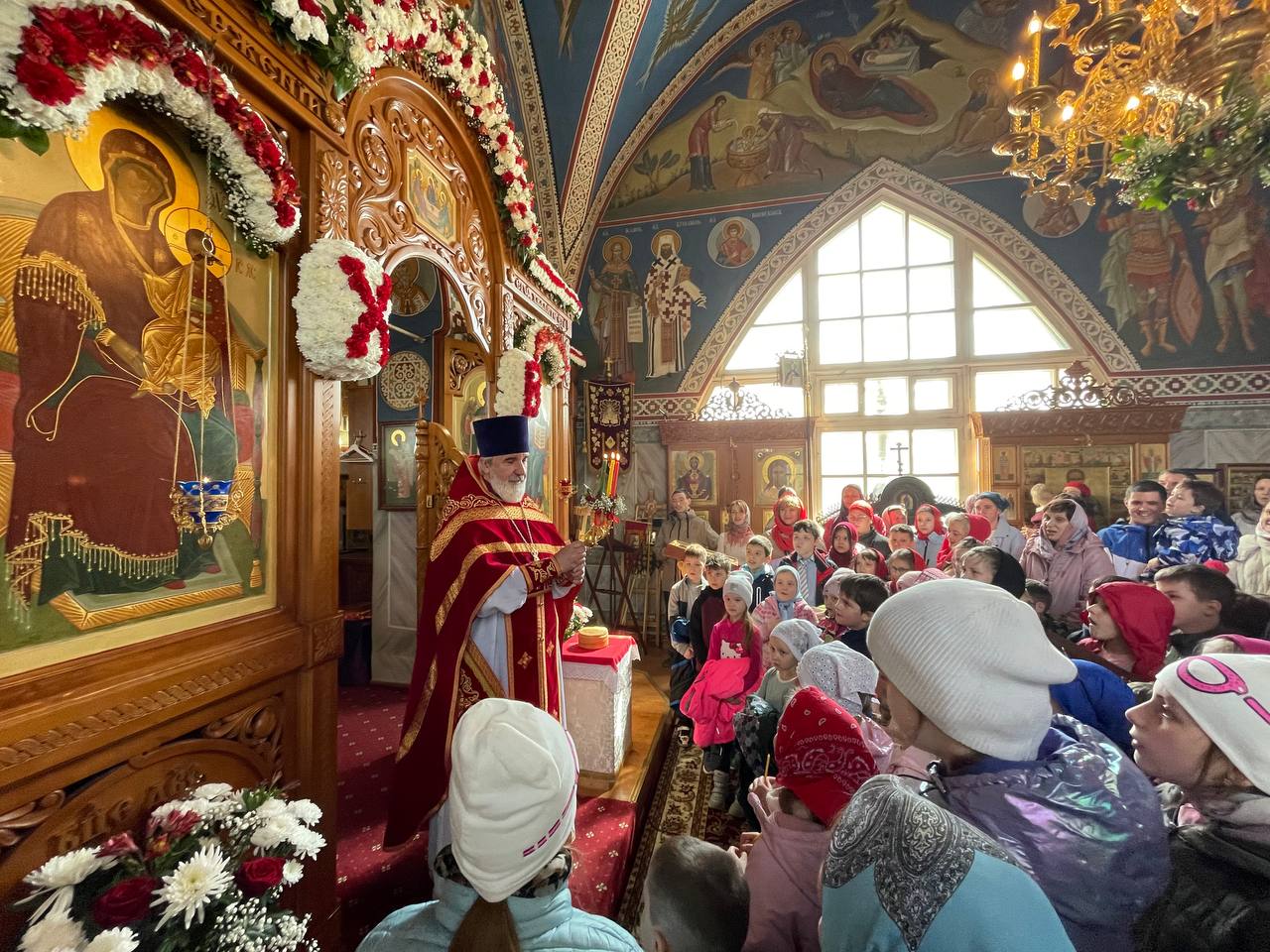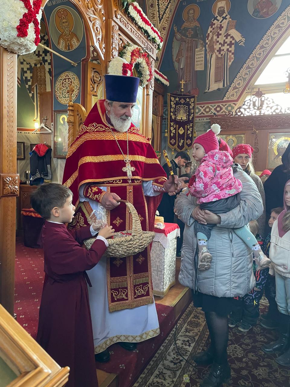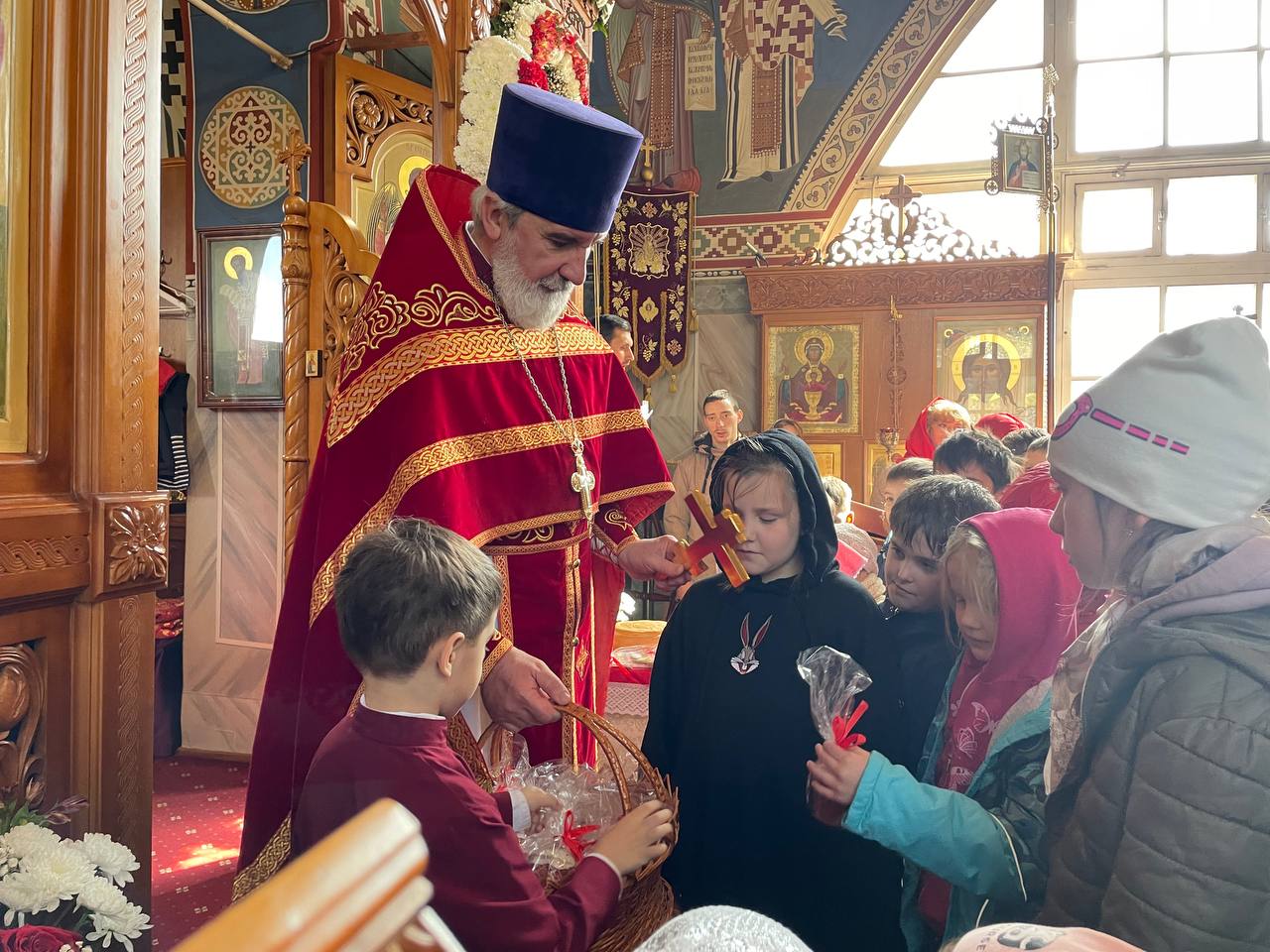 После богослужения настоятель храма обратился к прихожанам и воспитанникам воскресной школы «София» с поздравлением.