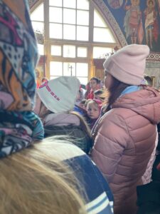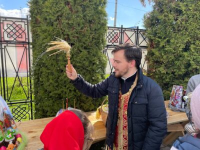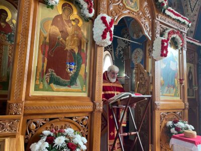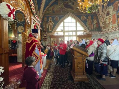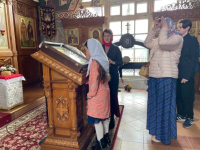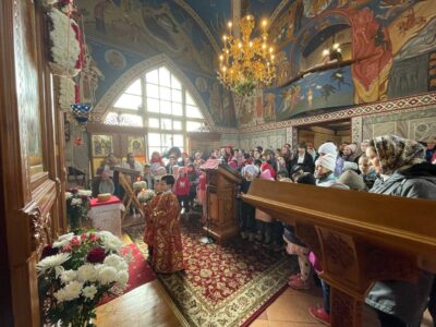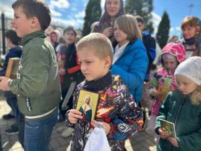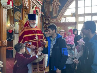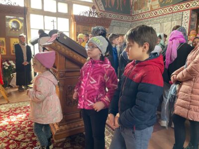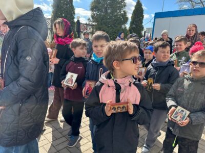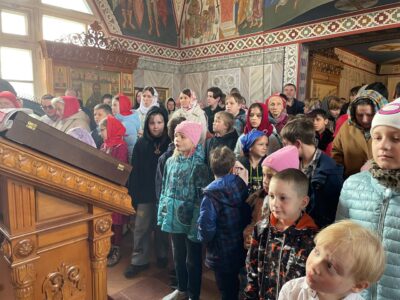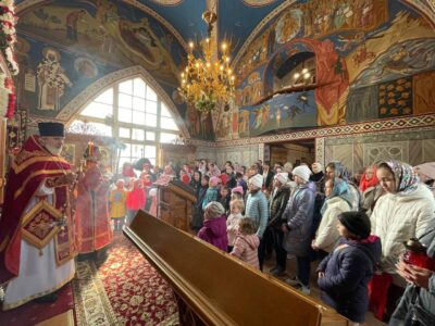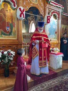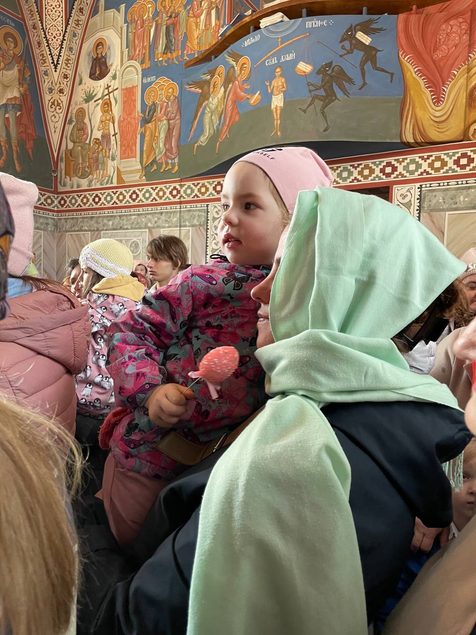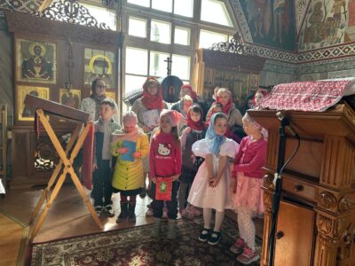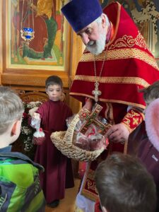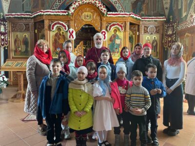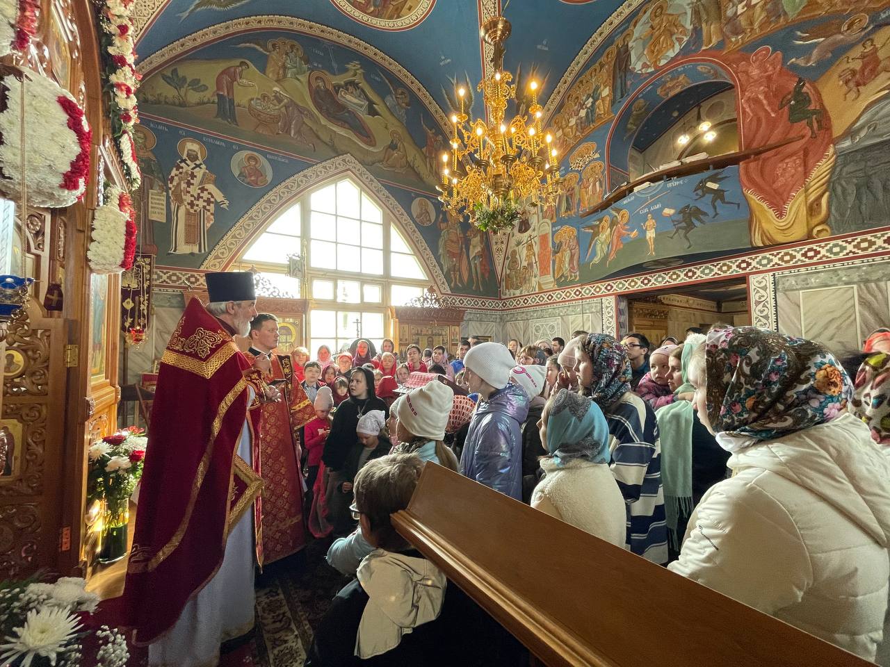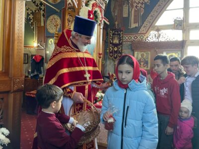 После богослужения настоятель храма обратился к прихожанам и воспитанникам воскресной школы «София» с поздравлением.