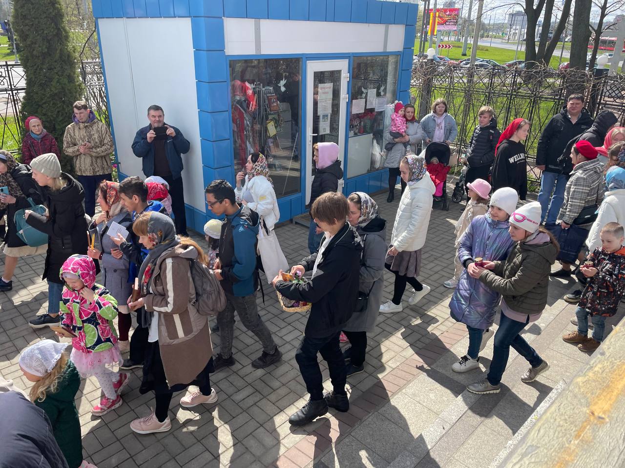 Всем детям, молившимся за богослужением, были подарены Пасхальные куличи.