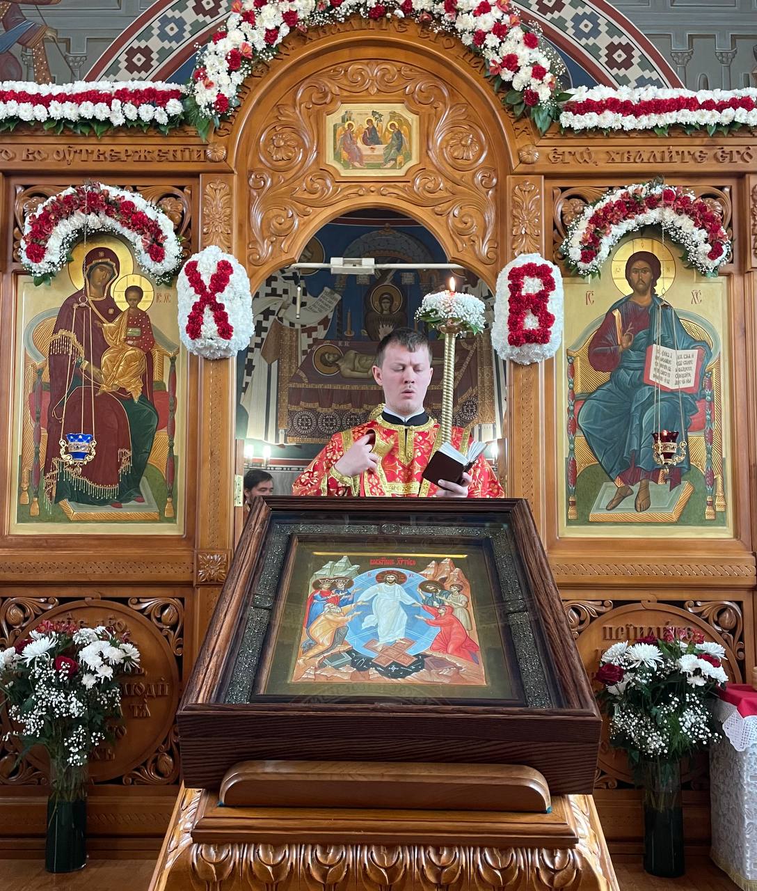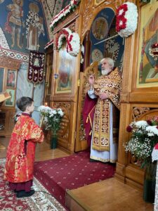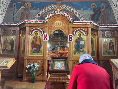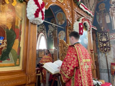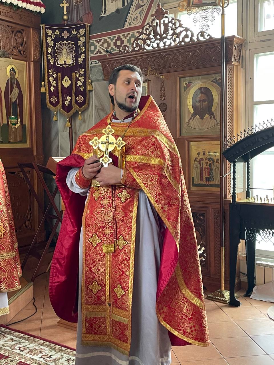 6 мая 2024 года, в понедельник Светлой седмицы, день памяти великомученика Георгия Победоносца, в храме святого праведного Иоанна Кронштадтского на Кронштадтской площади Божественную литургию совершил настоятель храма протоиерей Михаил Подолей в сослужении клира.