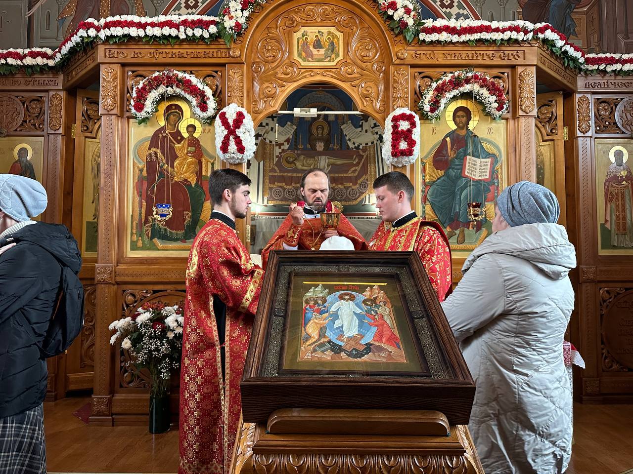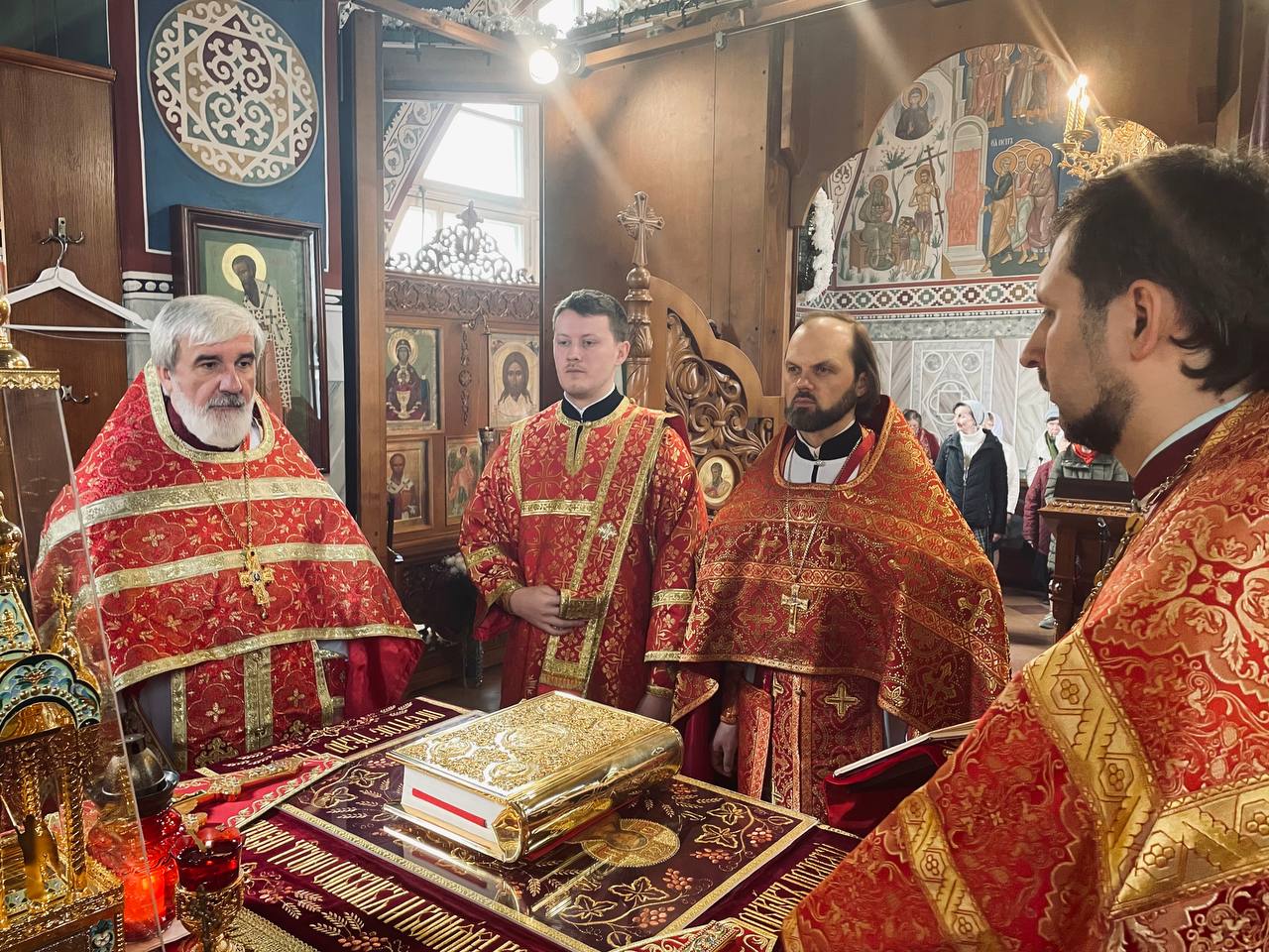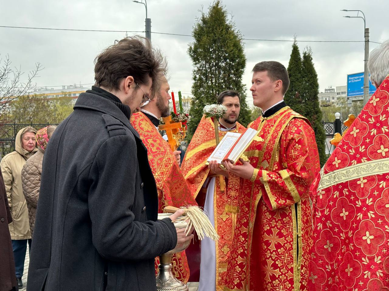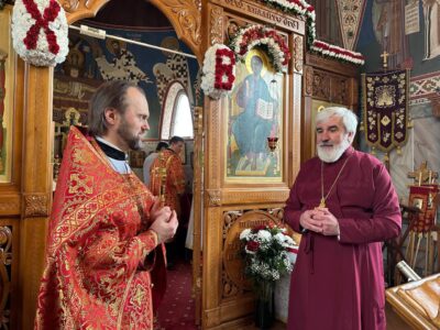 По окончании богослужения с проповедью к молящимся обратился священник Илия Макаров, в которой разъяснил суть праздника Пасхи. Также к отцу Илие и молящимся обратился настоятель храма протоиерей Михаил Подолей. В своем слове он поблагодарил отца Илию за совместные молитвы, поздравил с праздником и преподнес пасхальный подарок.