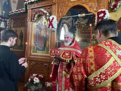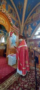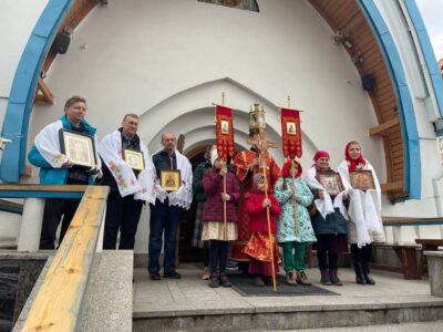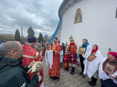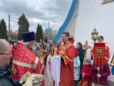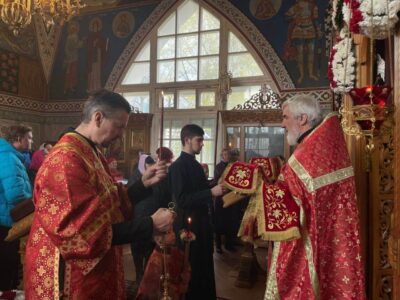 В конце Литургии был совершен Крестный ход вокруг храма, а также прочитана молитва на раздробление артоса, который после богослужения раздали всем прихожанам.