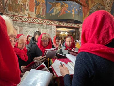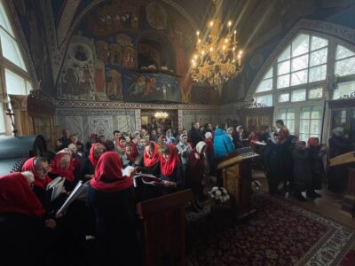 За Литургией пел любительский хор прихода храма святого праведного Иоанна Кронштадтского под управлением регента Марины Паниной.