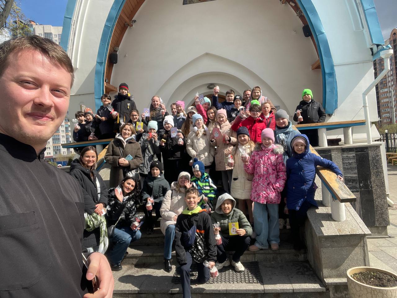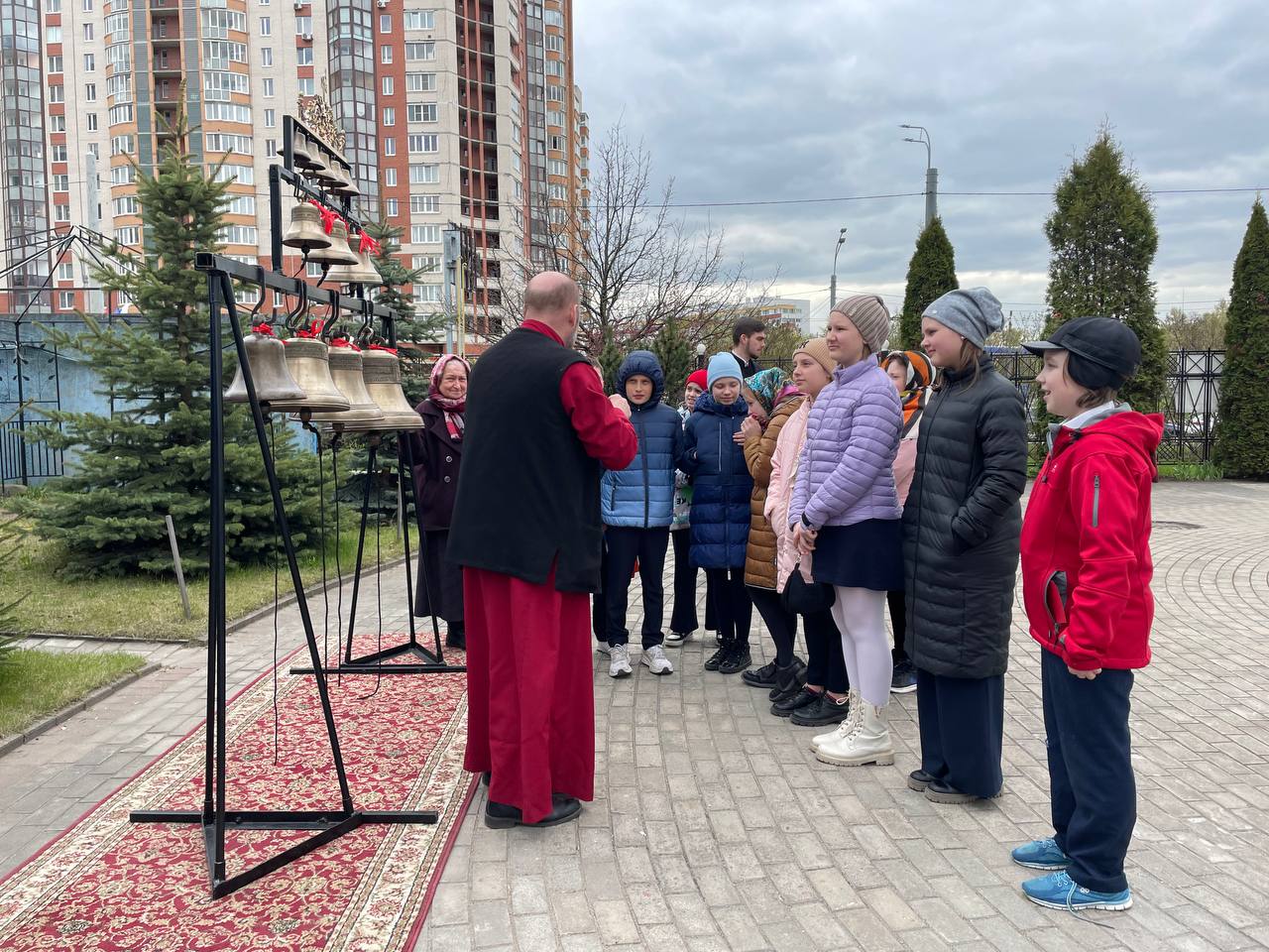 По благословению благочинного Красносельского благочиннического округа протоиерея Михаила Подолея на Светлой Седмице, с 6 по 11 мая 2024 года, учащиеся общеобразовательных школ, воспитанники дошкольных учреждений и детских домов Красносельского и Кировского районов посетили храмы Красносельского благочиния. Учащихся сопровождали педагоги школ, воспитатели и родители. Проводилась экскурсия с рассказом о Воскресении Христовом, мастер-классы по изготовлению пасхальных открыток, раздавались освященные пасхальные куличи. В тех храмах, где было возможно, дети прославляли Воскресшего Господа колокольным звоном.