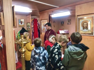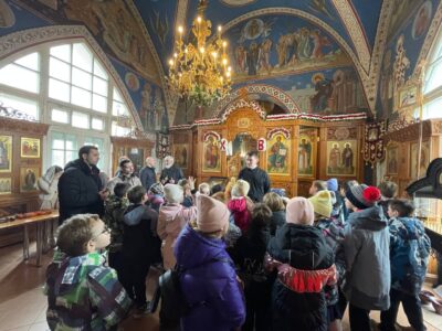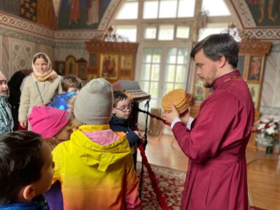 Храм преподобномученика Андрея Критского посетили 45 детей из ГБОУ СОШ №414. Настоятель храма — протоиерей Валерий Швецов.