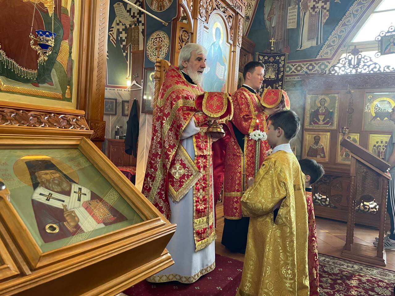 19 мая 2024 года, в Неделю 3-ю по Пасхе, святых жен-мироносиц, Божественную литургию в храме святого праведного Иоанна Кронштадтского на Кронштадтской площади совершил настоятель храма протоиерей Михаил Подолей в сослужении клира.