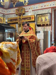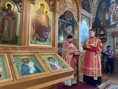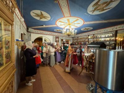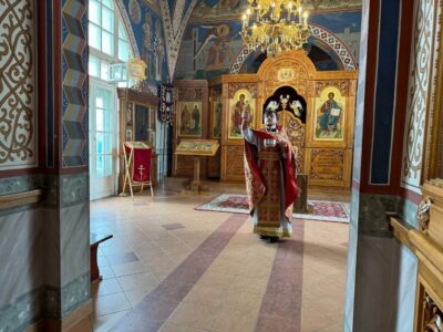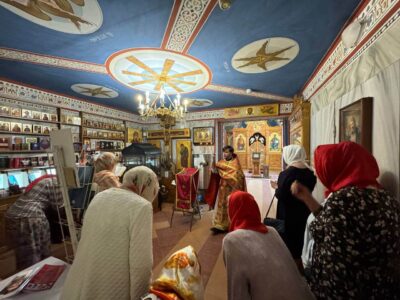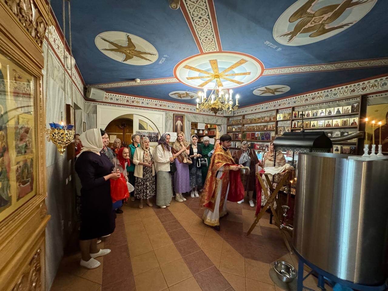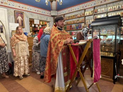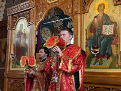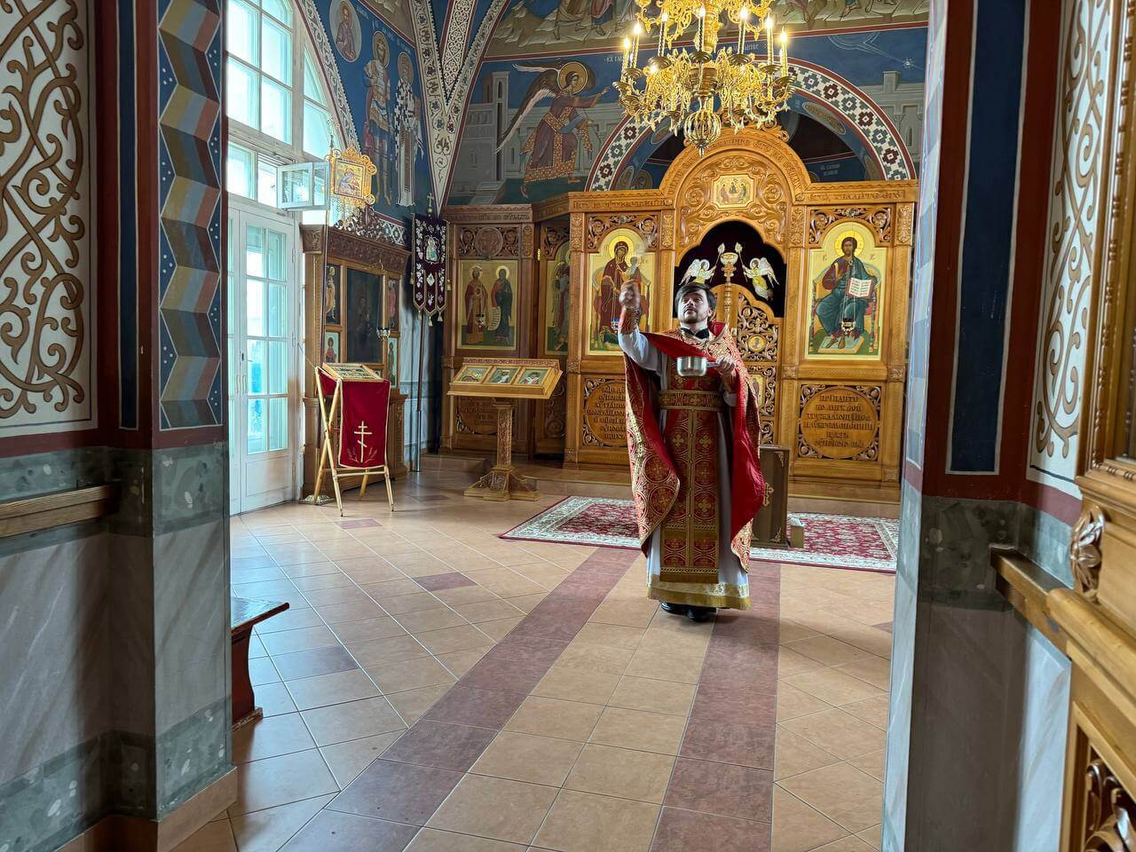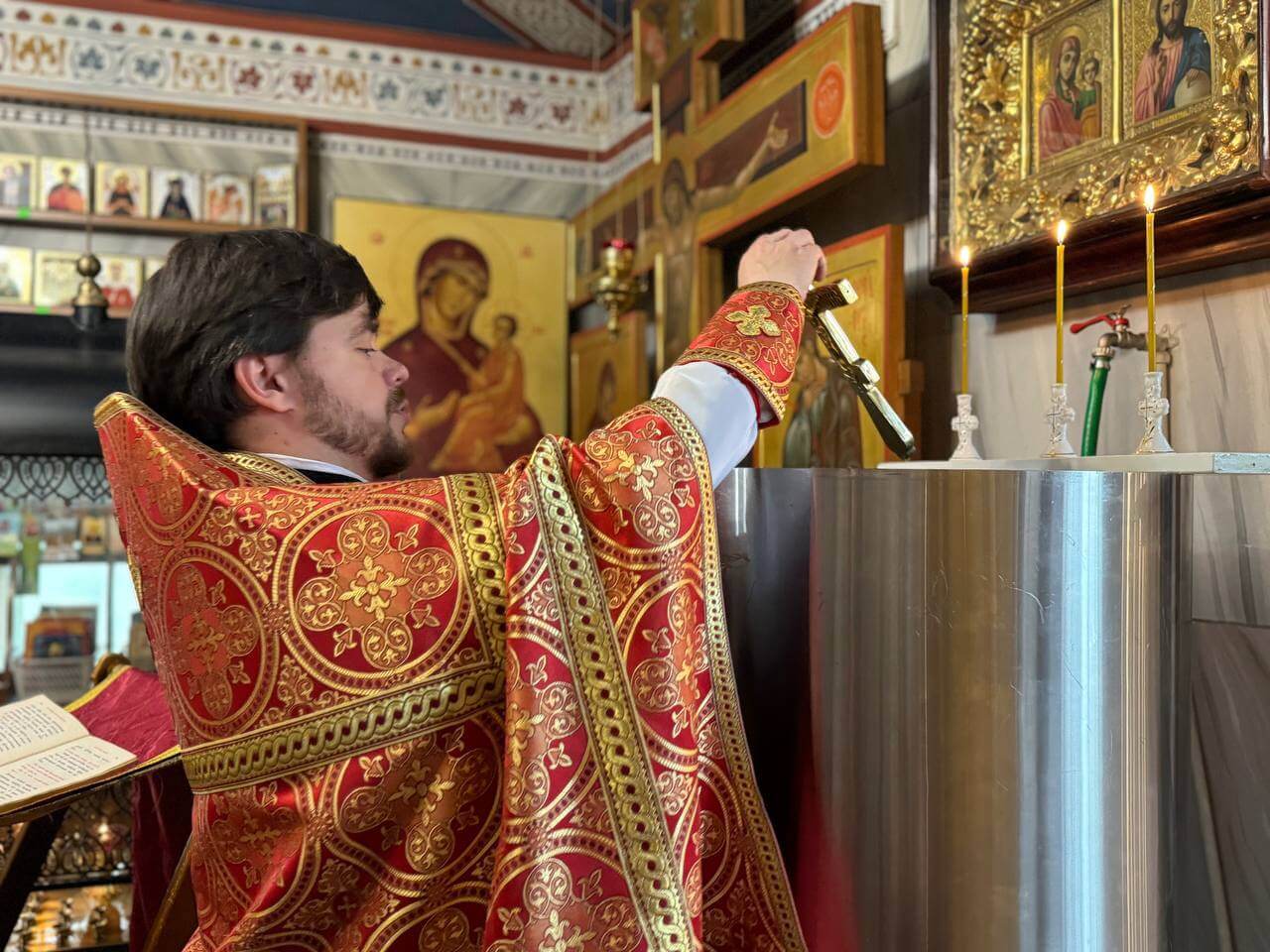 29 мая 2024 года, в праздник Преполовения Пятидесятницы, в храме святого праведного Иоанна Кронштадтского на Кронштадтской площади Божественную литургию совершил иерей Константин Подолей в сослужении клира.
