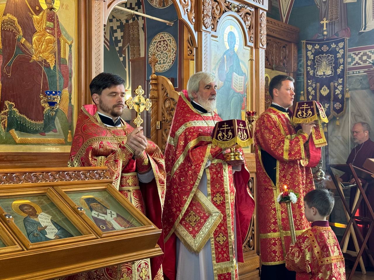 12 июня 2024 года, в праздник отдания Пасхи, Божественную литургию в храме святого праведного Иоанна Кронштадтского на Кронштадтской площади совершил настоятель храма протоиерей Михаил Подолей в сослужении клира.
