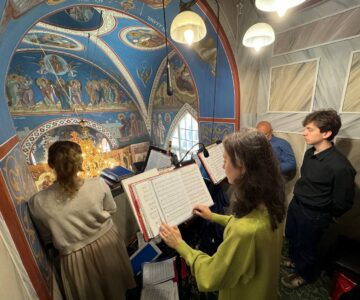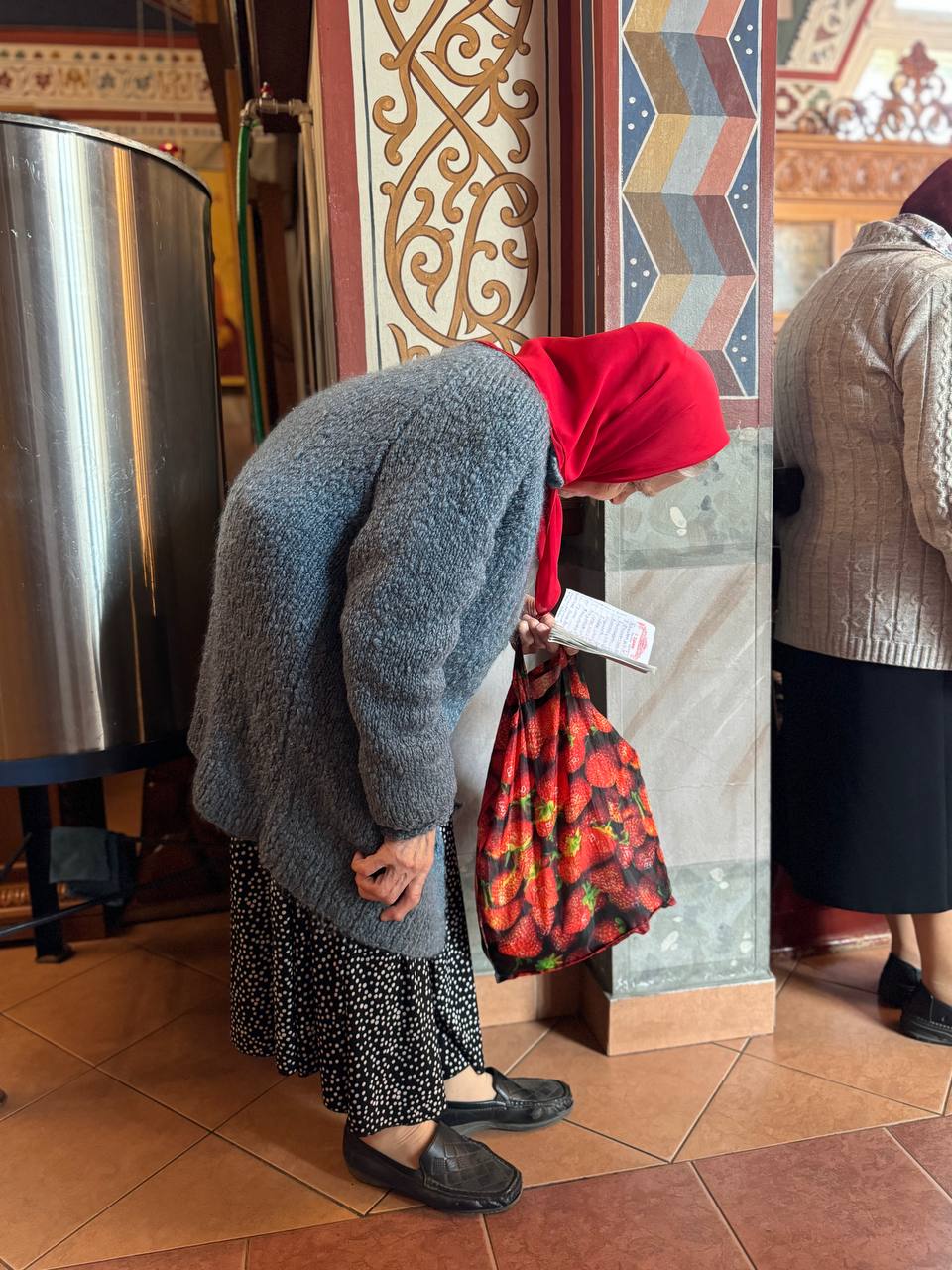 Душе́вныма очи́ма ослепле́н,/ к Тебе́, Христе́, прихожду́,/ я́коже слепы́й от рожде́ния,/ покая́нием зову́ Ти:// Ты су́щих во тьме Свет пресве́тлый.