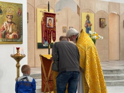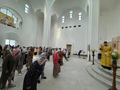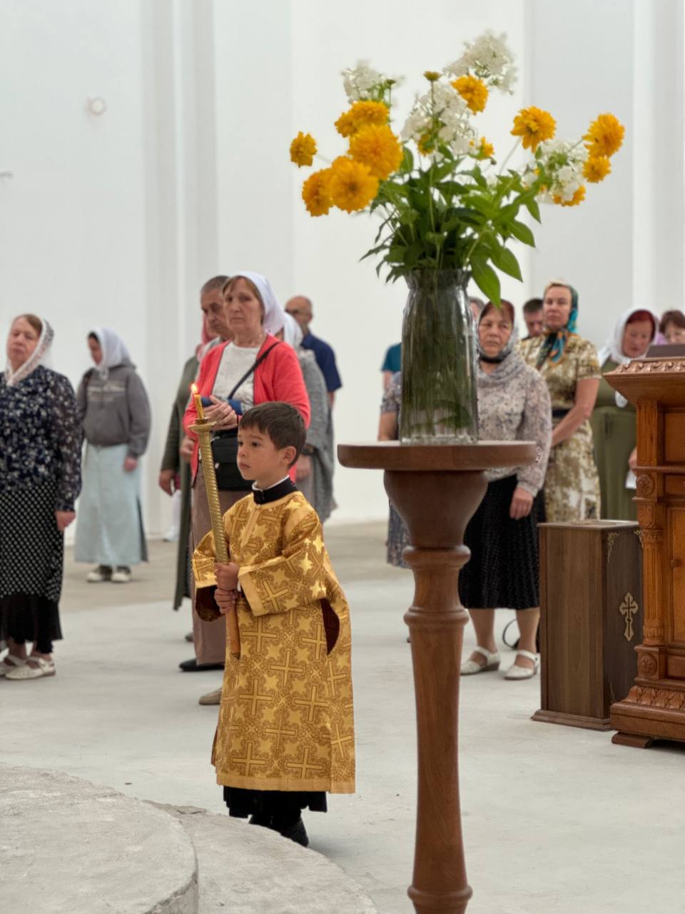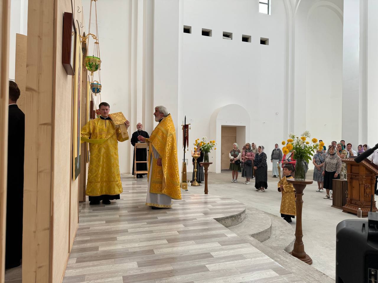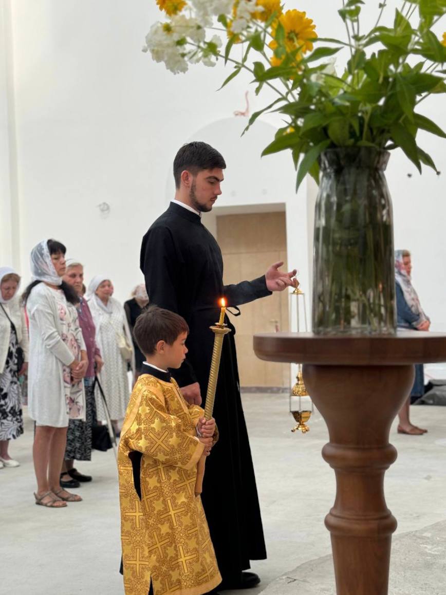 4 августа 2024 года, в Неделю 6-ю по Пятидесятнице, день памяти мироносицы равноапостольной Марии Магдалины, Божественную литургию в строящемся храме Всемилостивого Спаса совершил настоятель храма протоиерей Михаил Подолей в сослужении клира.