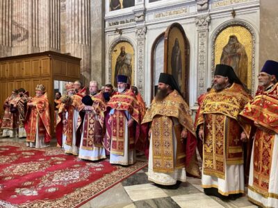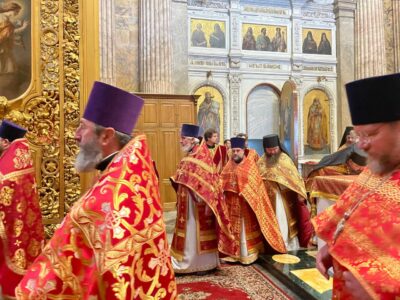 13 августа 2024 года, в день памяти священномученика Вениамина, митрополита Петроградского, и иже с ним убиенных, благочинный Красносельского благочиннического округа протоиерей Михаил Подолей сослужил митрополиту Санкт-Петербургскому и Ладожскому Варсонофию, который совершил Божественную литургию в Исаакиевском соборе.
