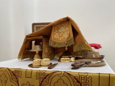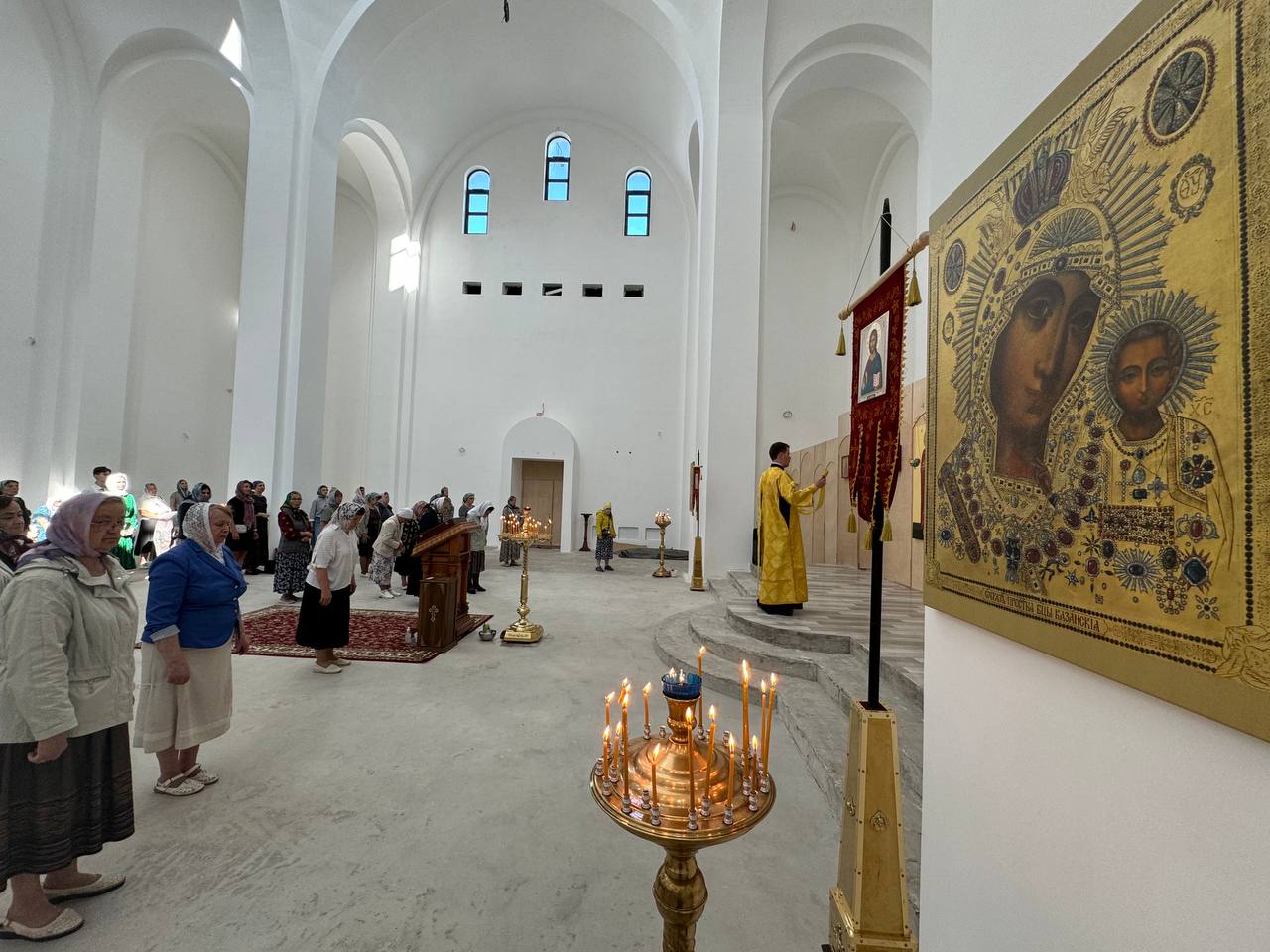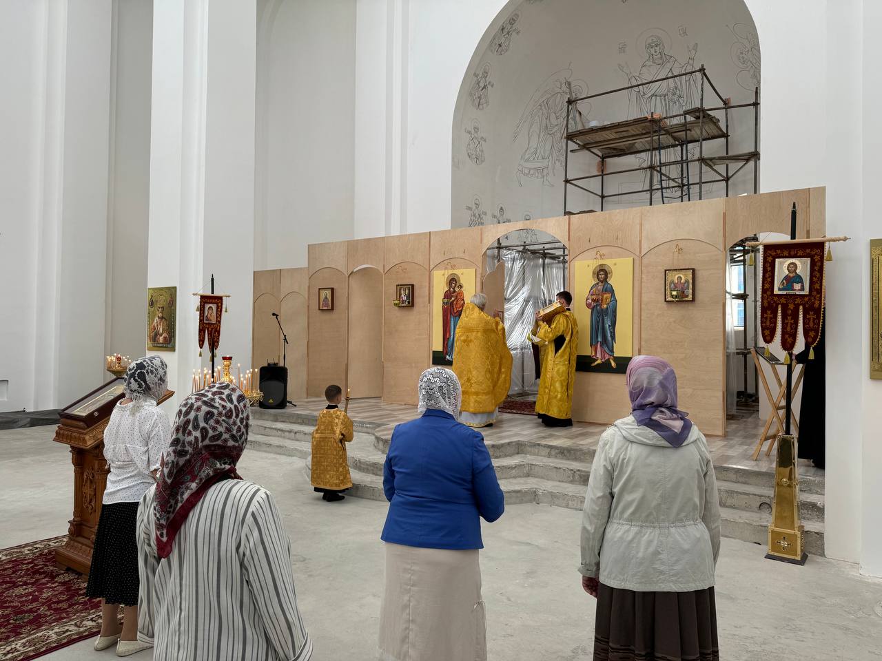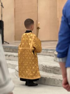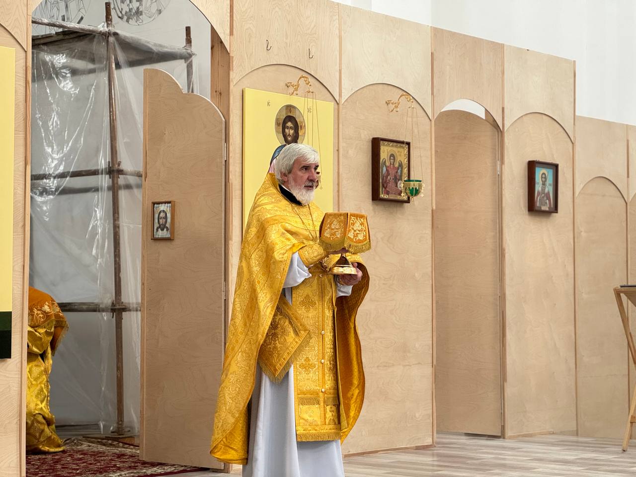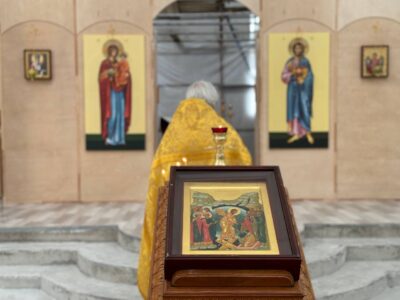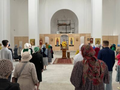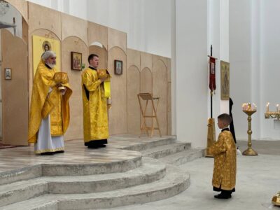 18 августа 2024 года, в Неделю 8-ю по Пятидесятнице, Божественную литургию в строящемся храме Всемилостивого Спаса совершил настоятель храма протоиерей Михаил Подолей в сослужении клира.